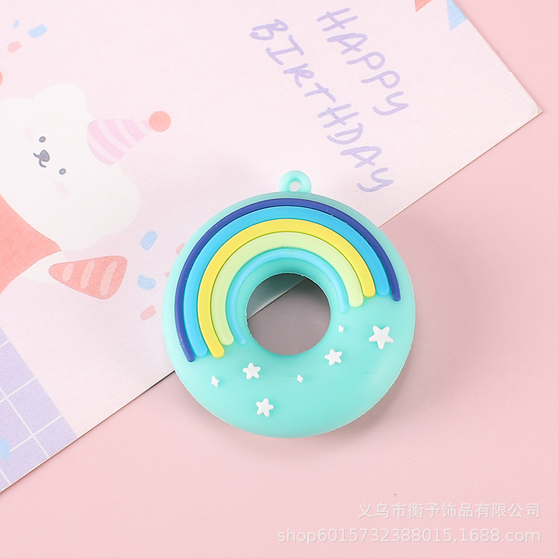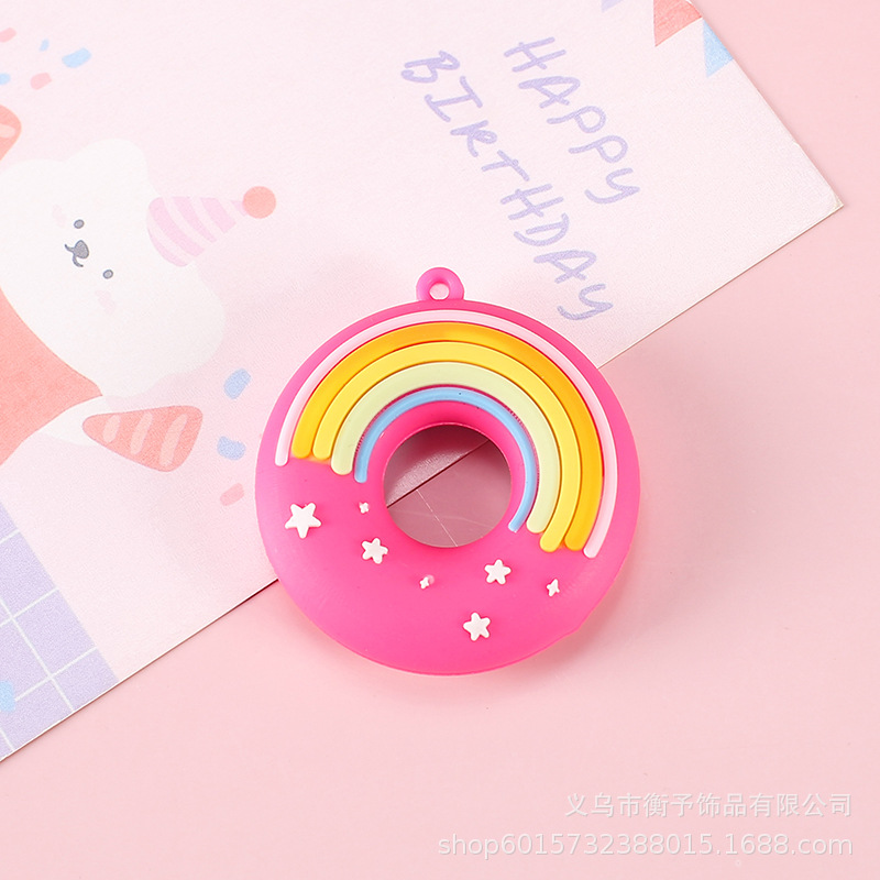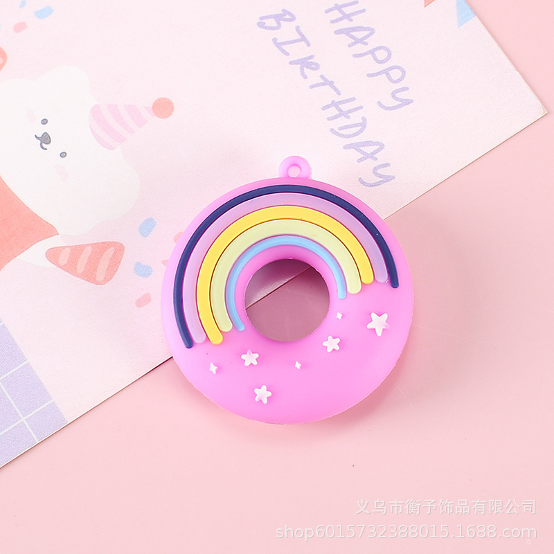 창조적 인 만화 pvc 부드러운 고무 무지개 도넛 키 체인 펜던트 가방 학생 학교 가방 액세서리 작은 선물스토어 가기