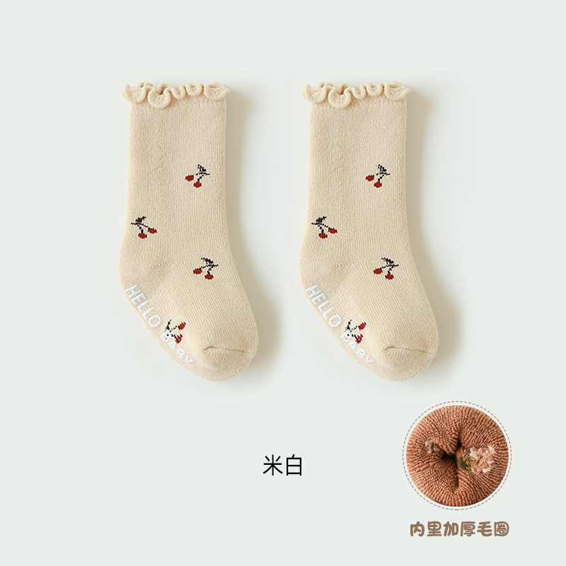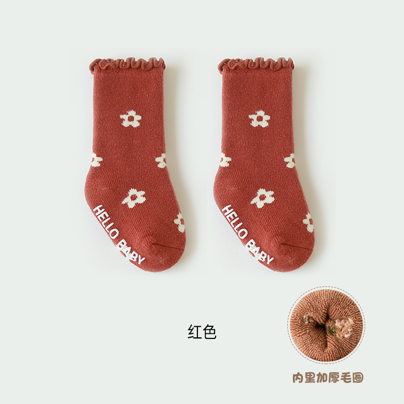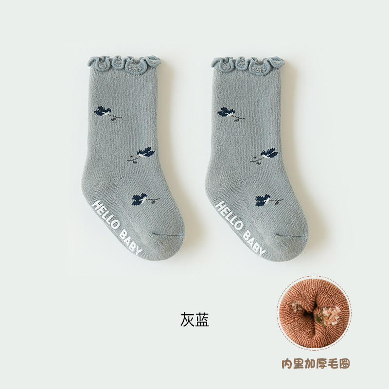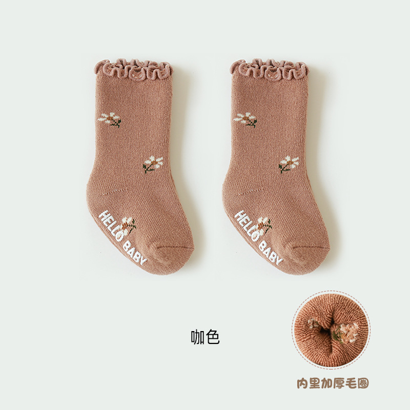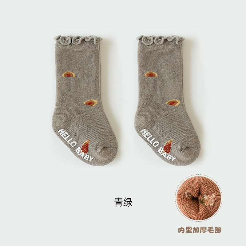 두꺼운 아기 양말 가을과 겨울 테리 따뜻한 신생아 아기면 양말 복고풍 느슨한 시원한 미끄럼 방지 바닥 양말