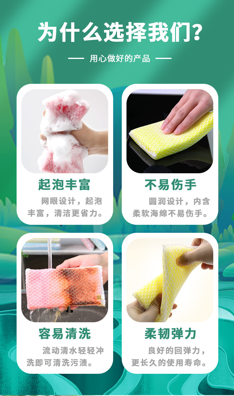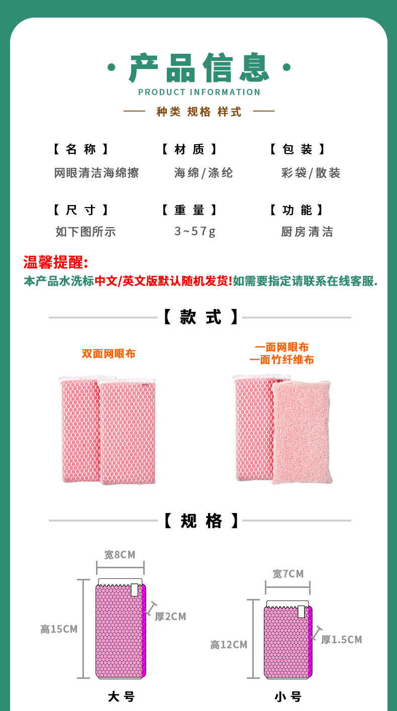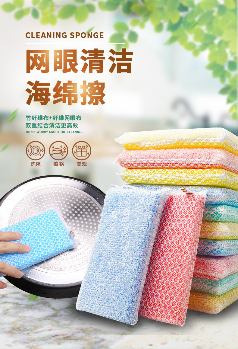 양면 식기 세척 스폰지 양면 메쉬 청소 스폰지 블록 가정용 대나무 섬유 식기 세척 천 거품 풍부한스토어 가기