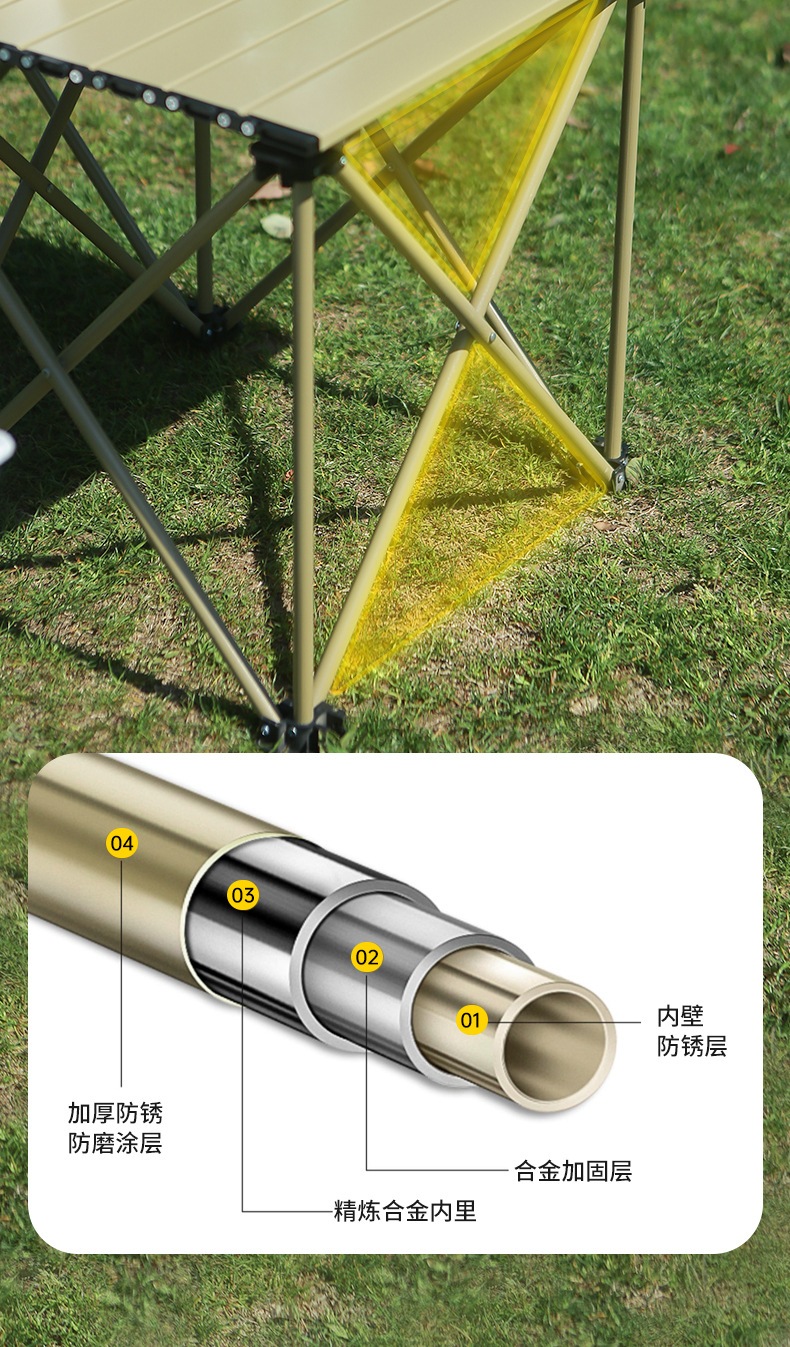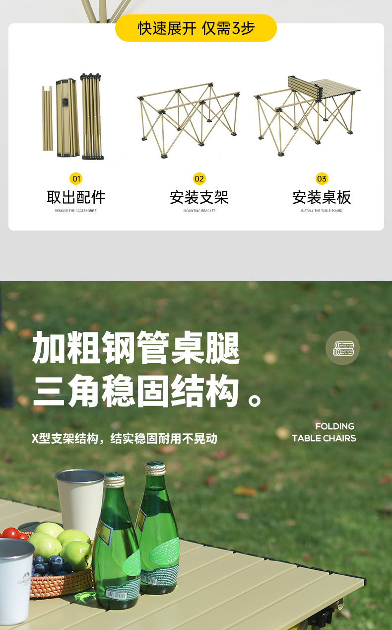 공장 재고 야외 캠핑 테이블과 의자 세트 합금 접이식 테이블 휴대용 자동차 계란 롤 테이블