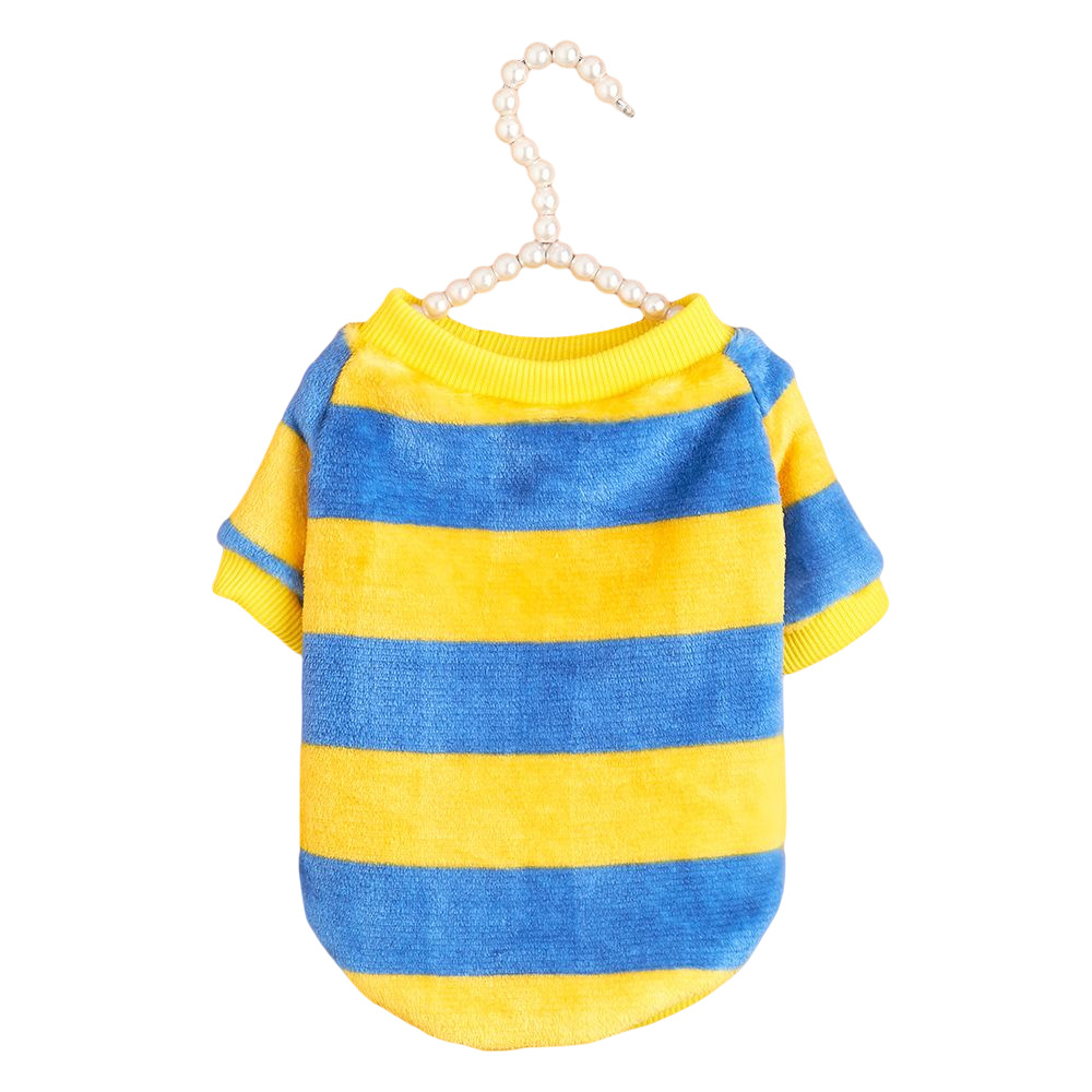 가을과 겨울 애완 동물 스웨터 노란색과 파란색 줄무늬 인 스타일 귀여운 영국 고양이 의류 냉장 따뜻한 도매 개 옷
