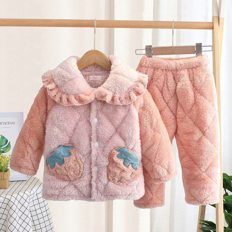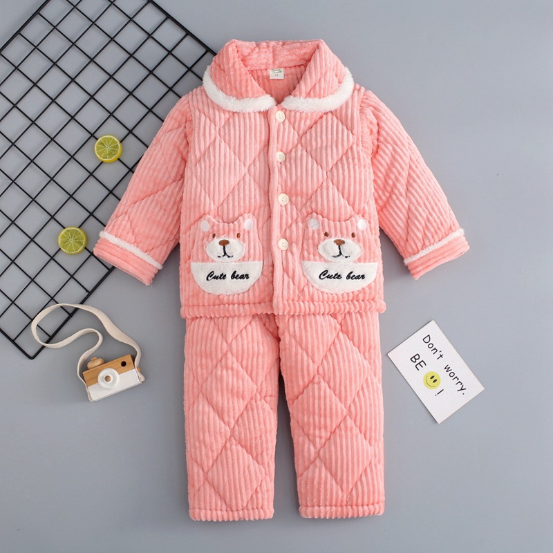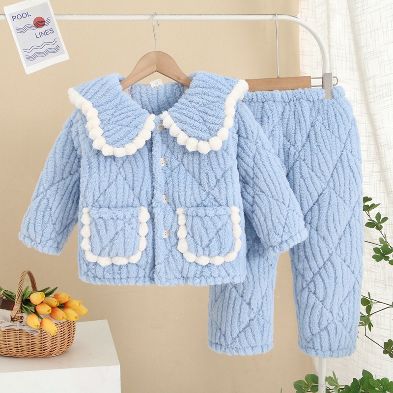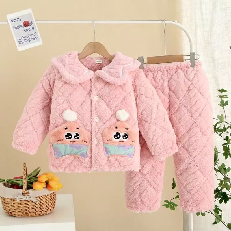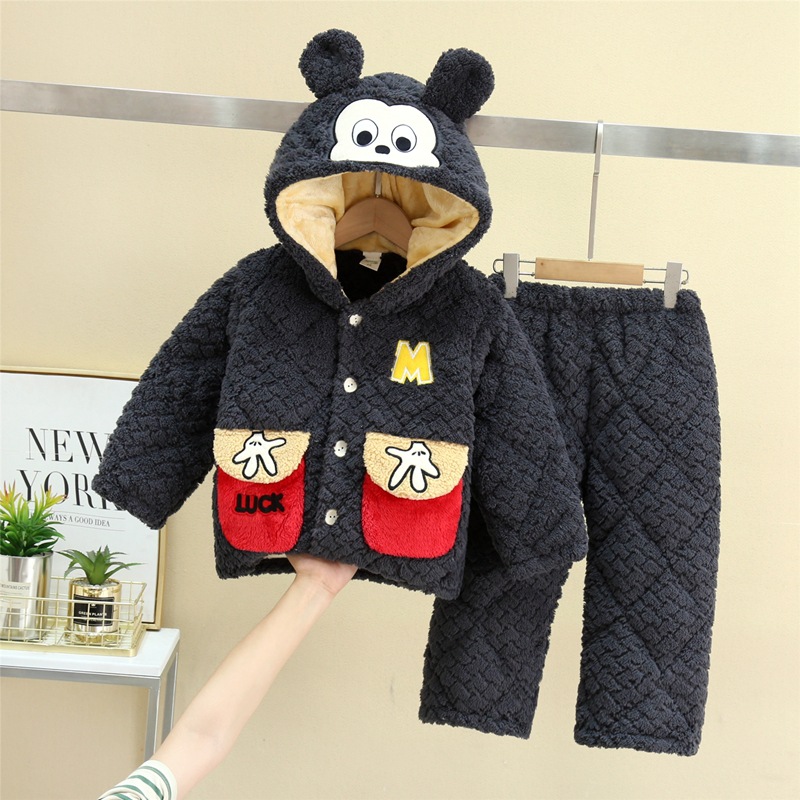 소년과 소녀를위한 겨울 어린이 플란넬 잠옷 아기 두꺼운 면 따뜻한 산호 양털 가정 옷 세트