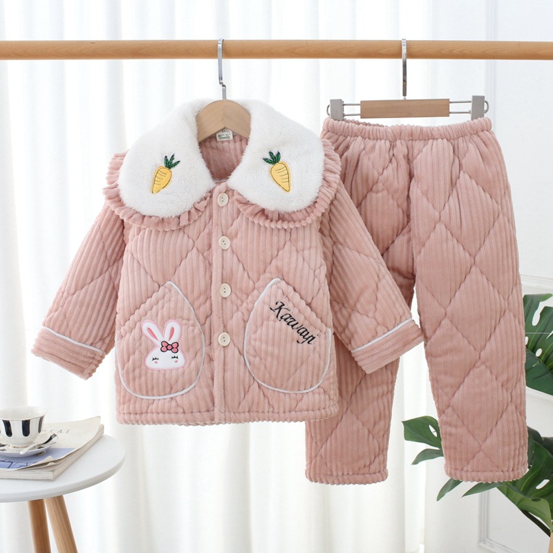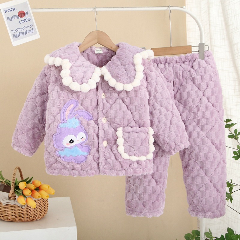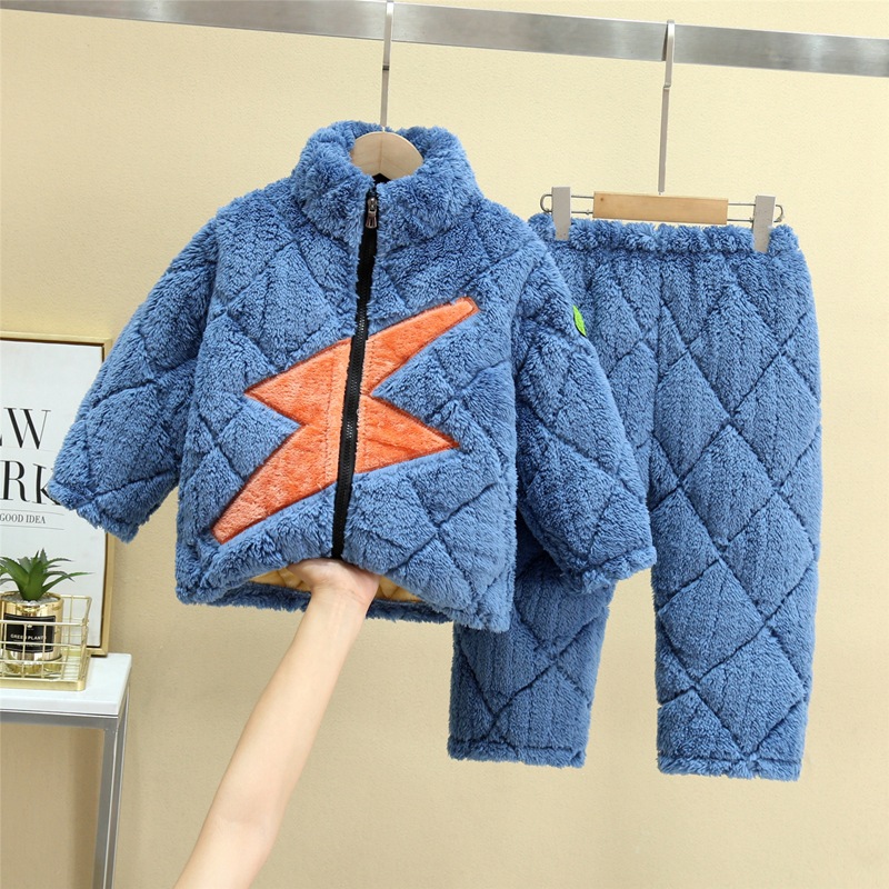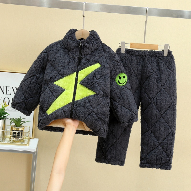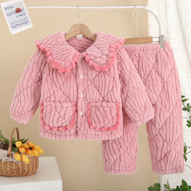 소년과 소녀를위한 겨울 어린이 플란넬 잠옷 아기 두꺼운 면 따뜻한 산호 양털 가정 옷 세트