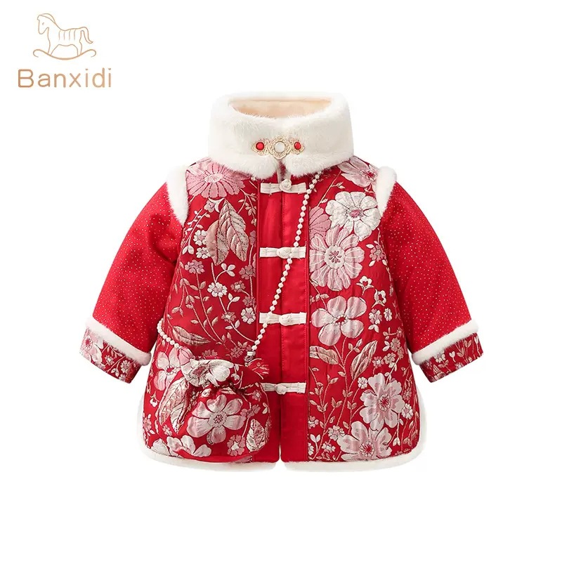 2022 가을과 겨울 소녀를 원피스 새해 인사 의류 중국 스타일 Hanfu Tang 세트 아기 소녀 축제 옷스토어 가기