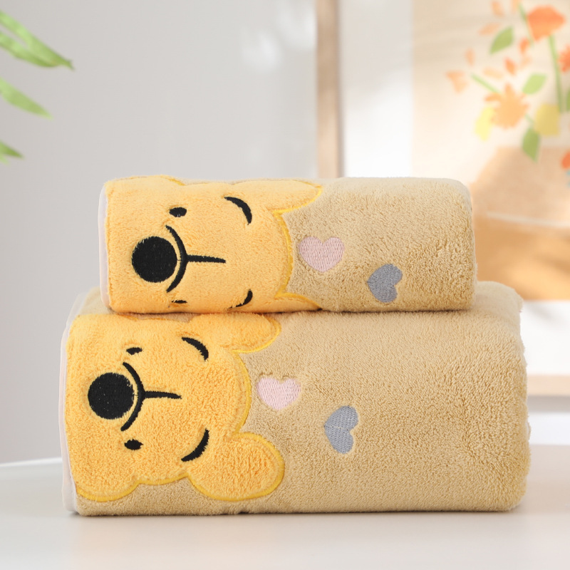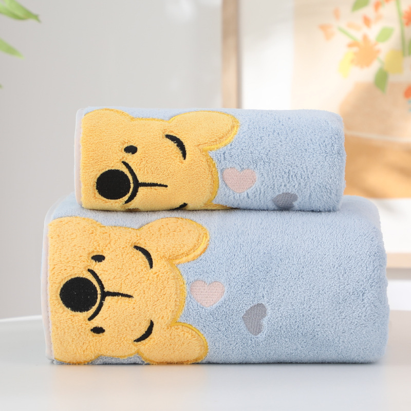 만화 자수 산호 양털 위니 타월 목욕 타올 세트 타월 부드러운 흡수성 커플 워시 페이스 타올 가정용 목욕 타올