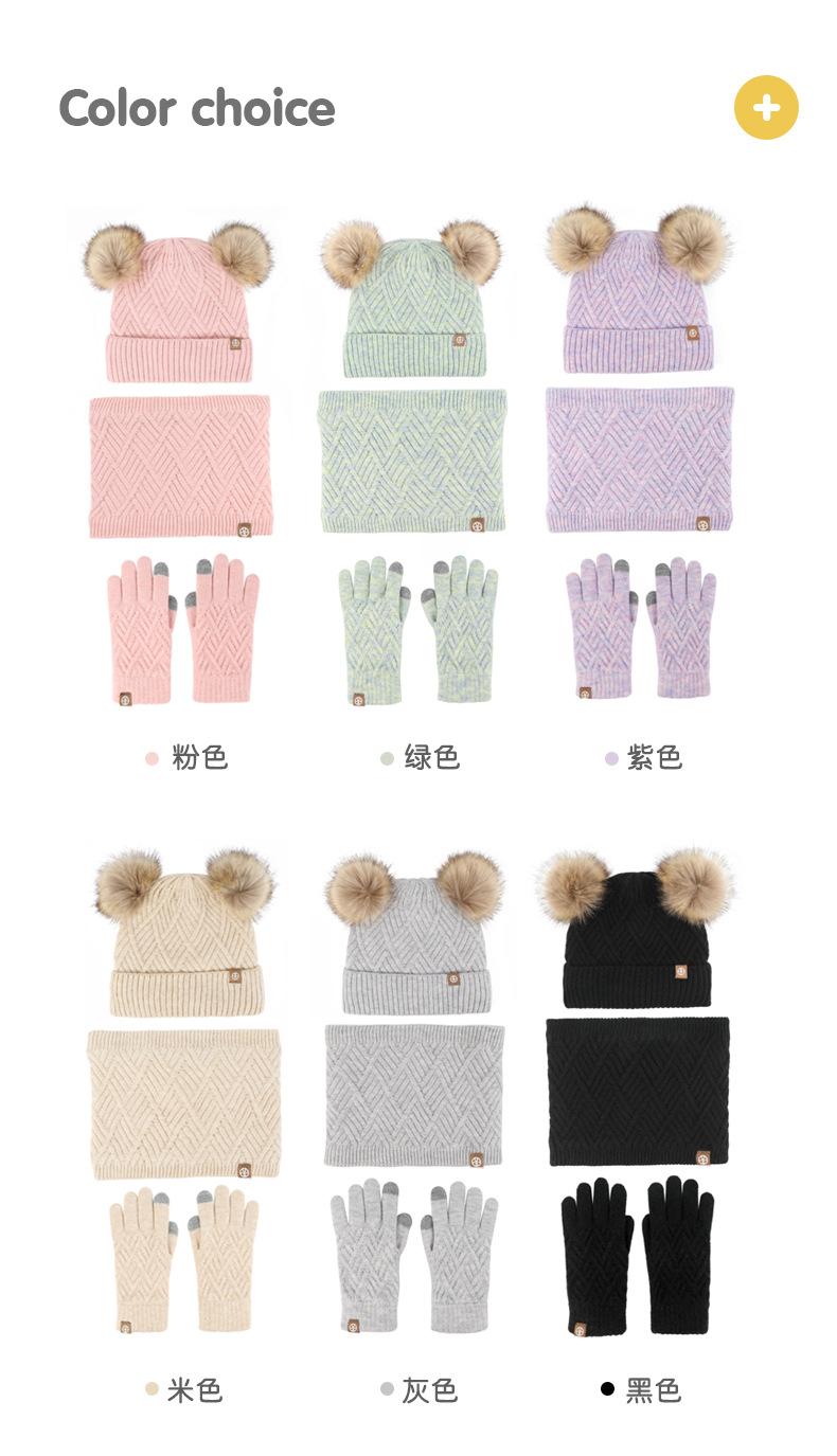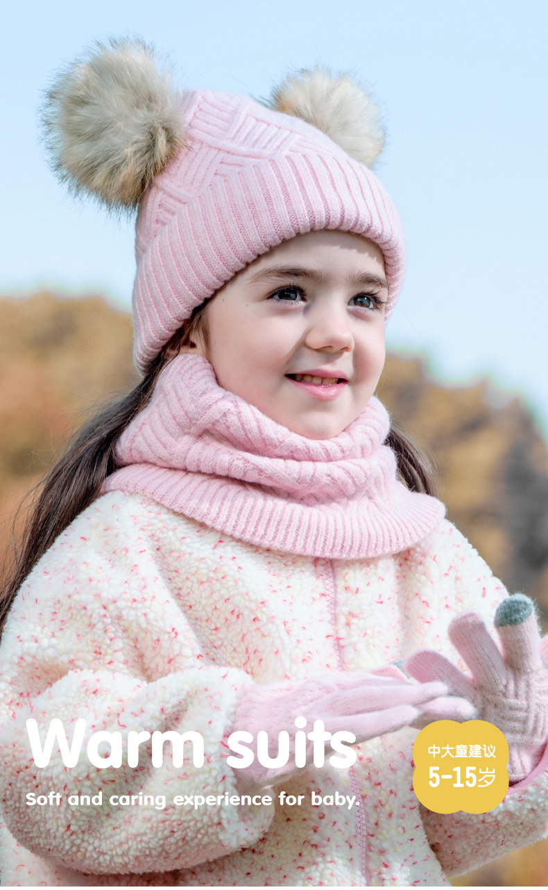 크로스 보더 어린이 겨울 양모 따뜻한 니트 모자 스카프 장갑 3 종 세트 플러스 푹신한 볼 모자 3 종 세트