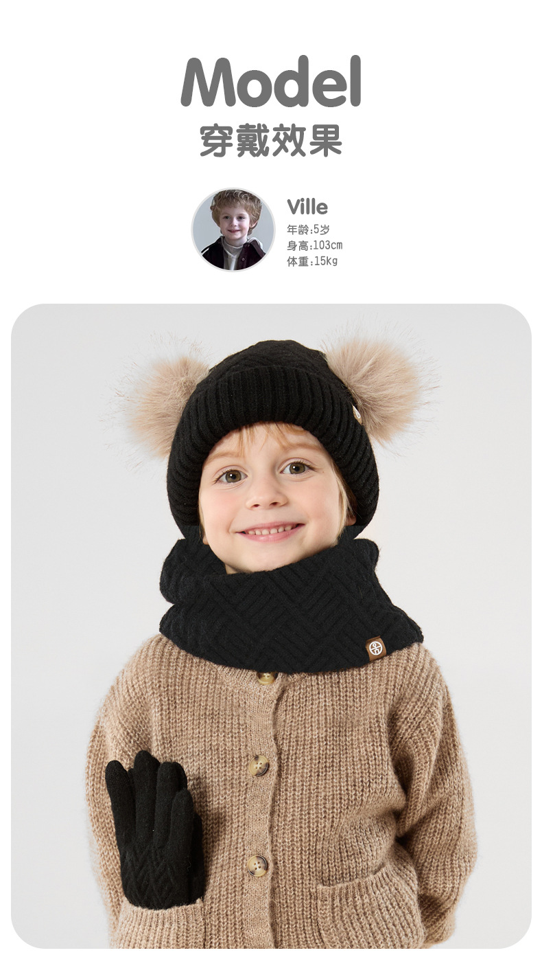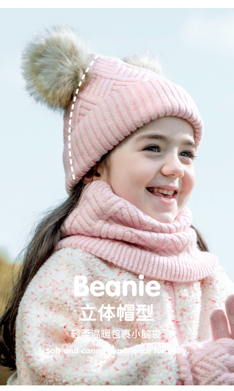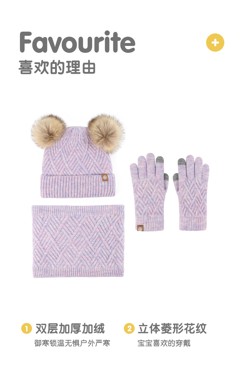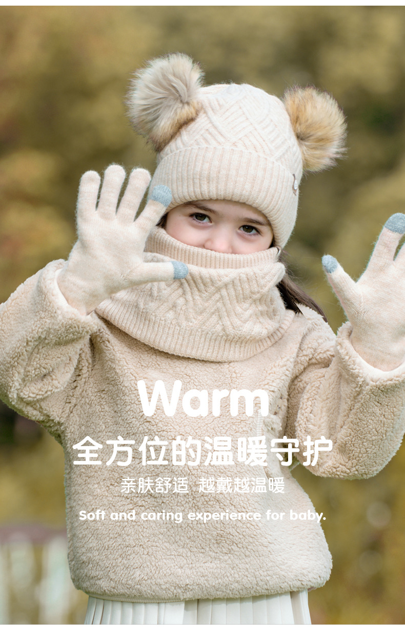 크로스 보더 어린이 겨울 양모 따뜻한 니트 모자 스카프 장갑 3 종 세트 플러스 푹신한 볼 모자 3 종 세트스토어 가기