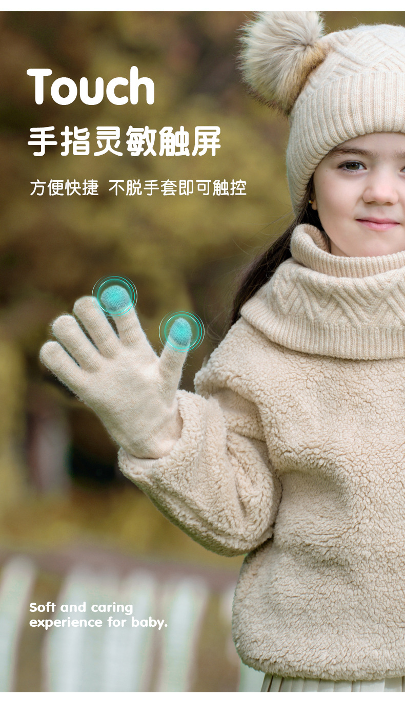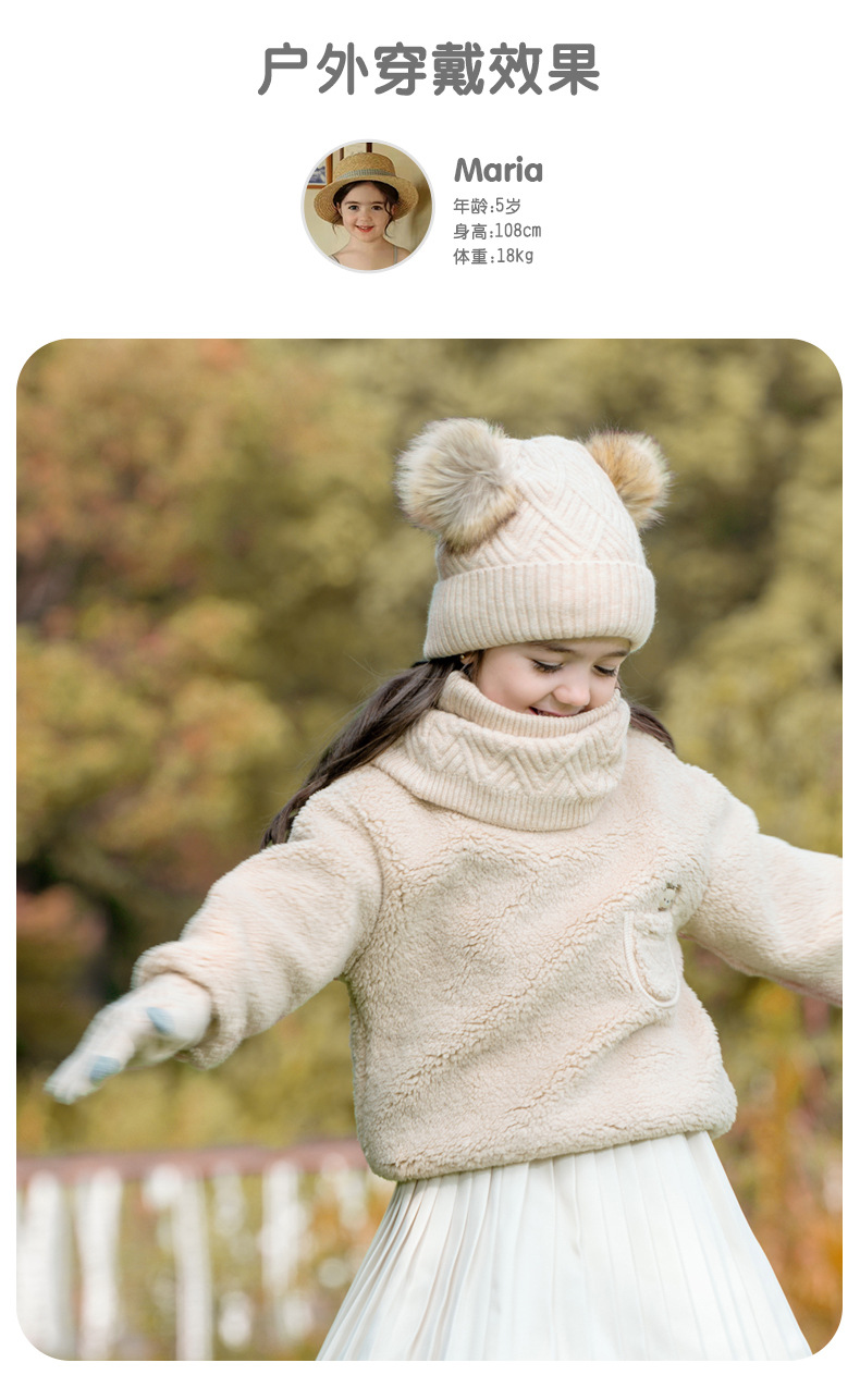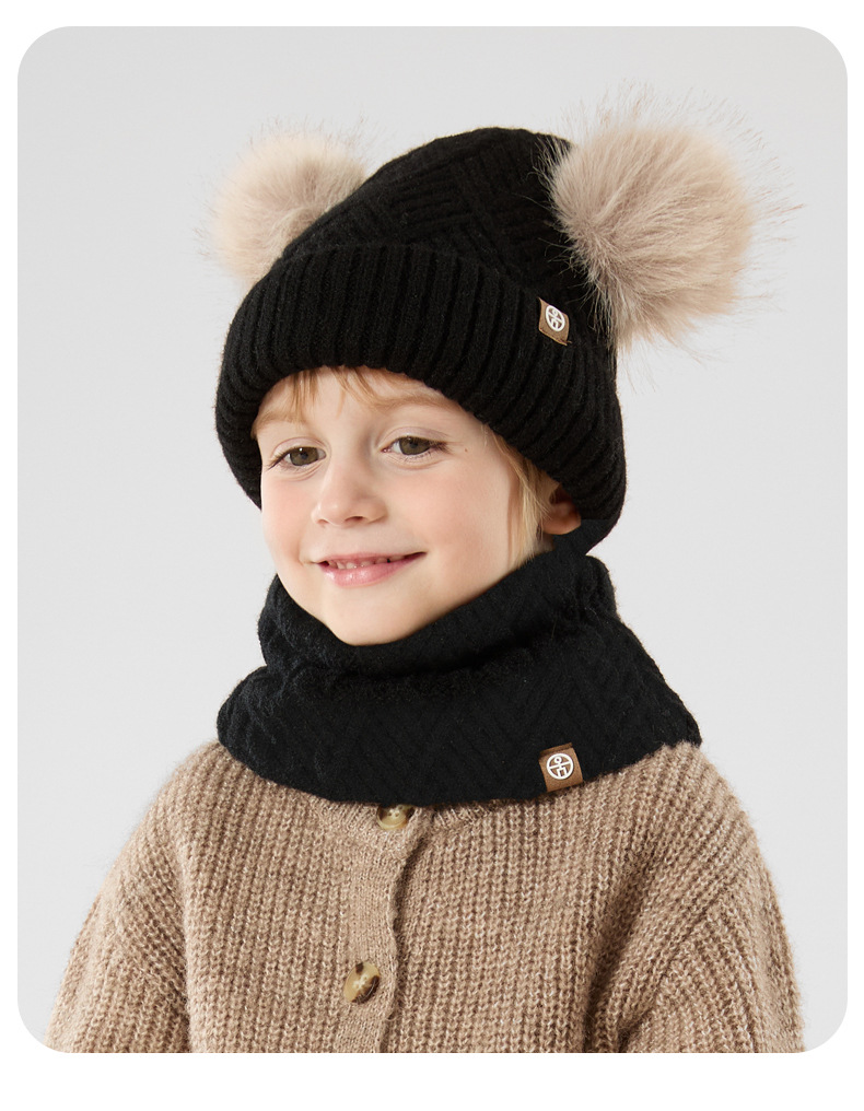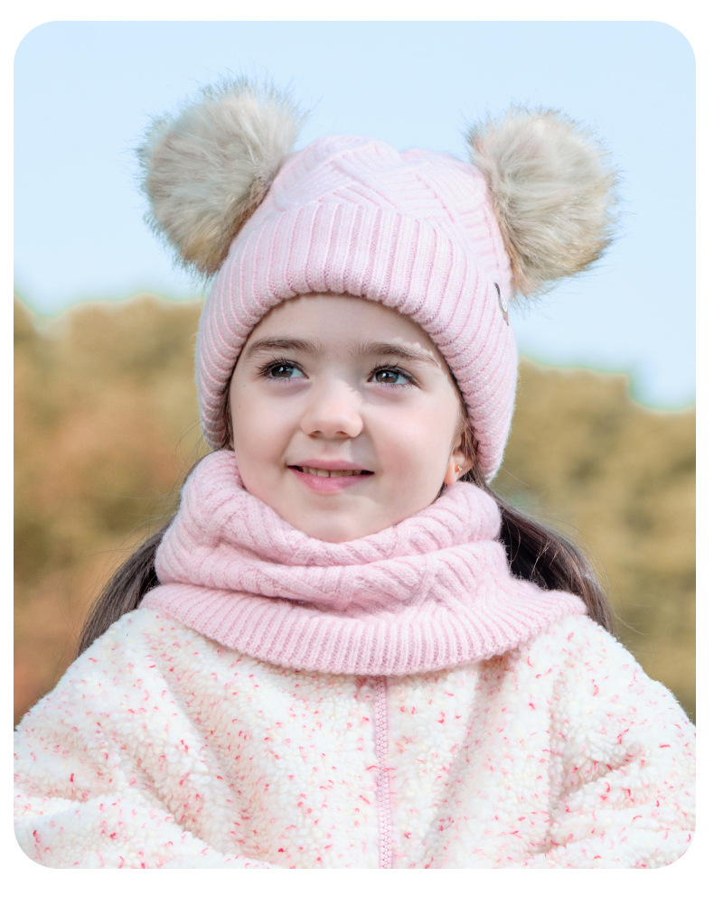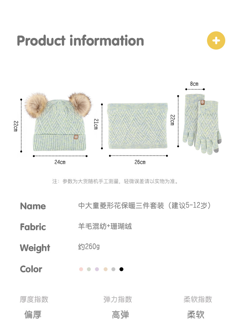 크로스 보더 어린이 겨울 양모 따뜻한 니트 모자 스카프 장갑 3 종 세트 플러스 푹신한 볼 모자 3 종 세트스토어 가기