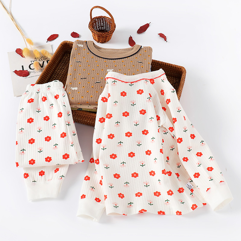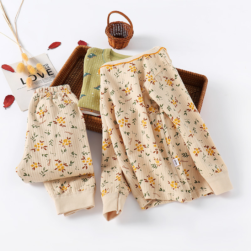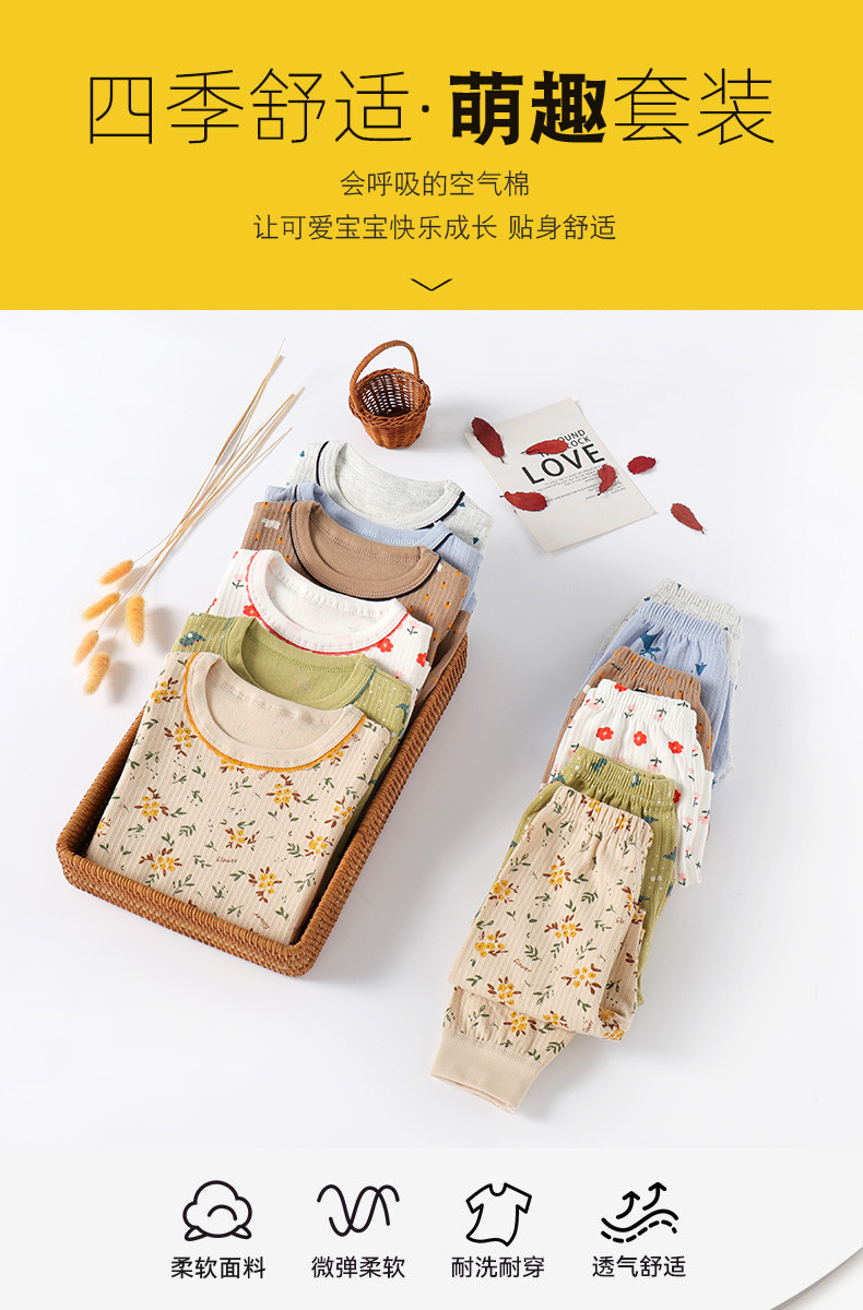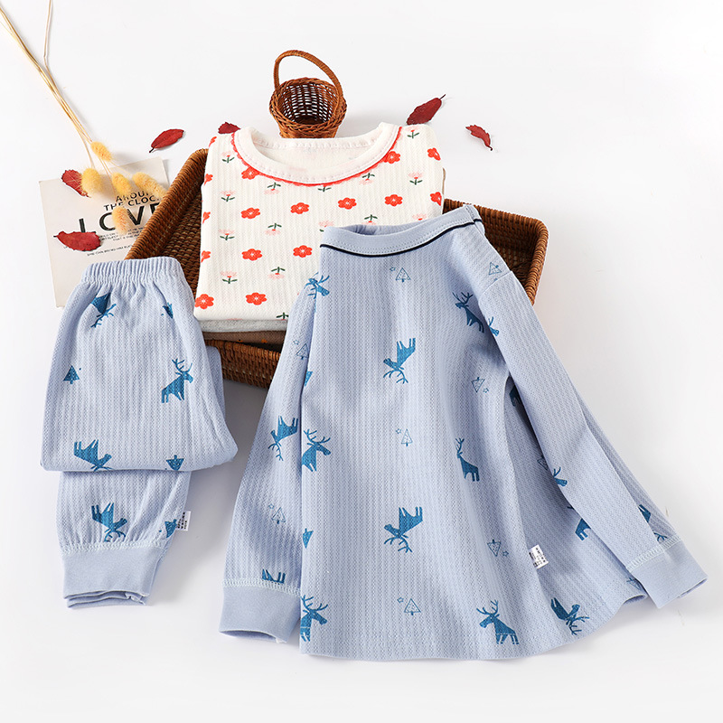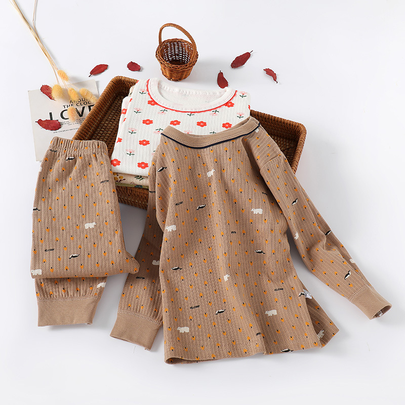 어린이 면화 가을과 겨울 세트 의류 소년과 소녀 가정복 아기 잠옷 코튼 자카드 투피스 세트스토어 가기