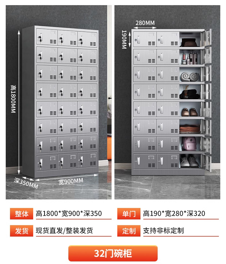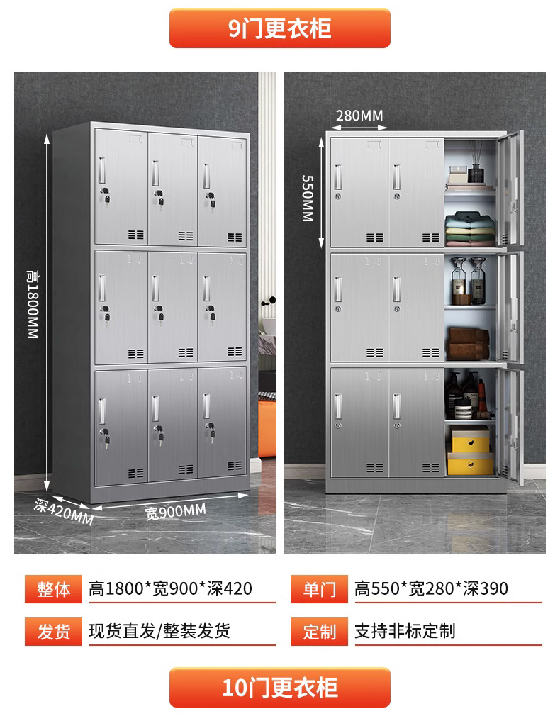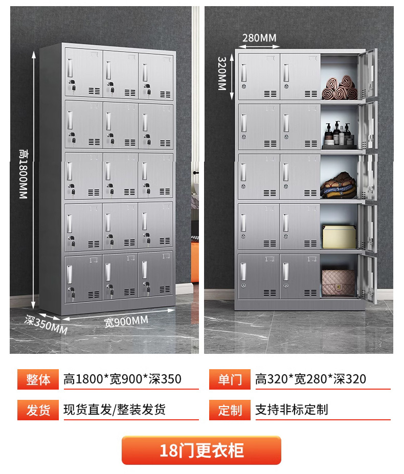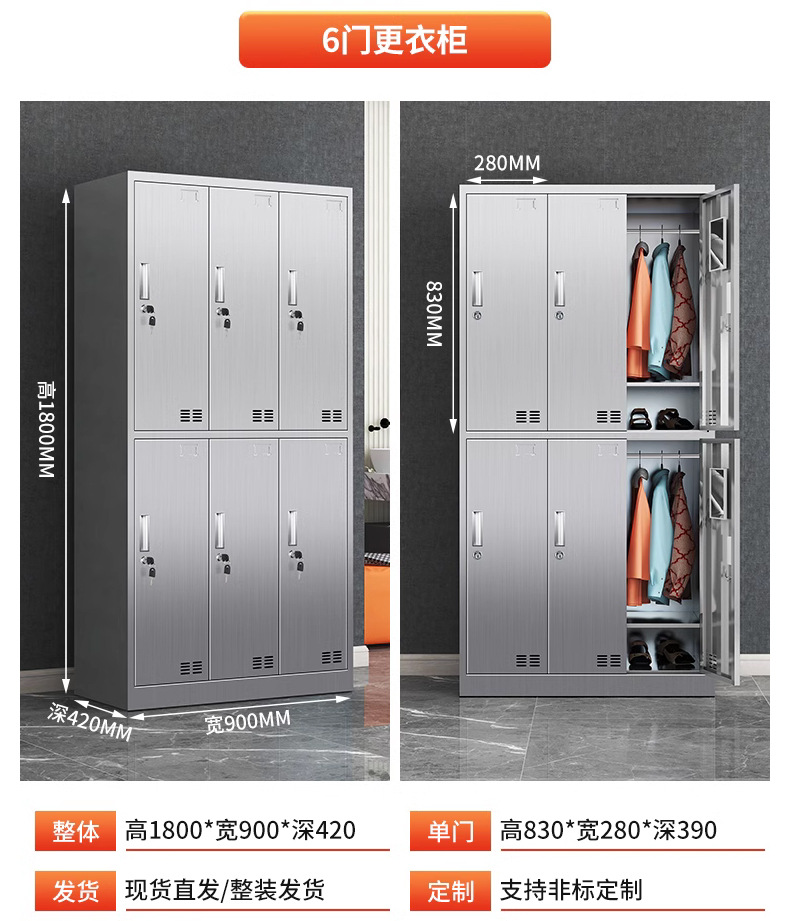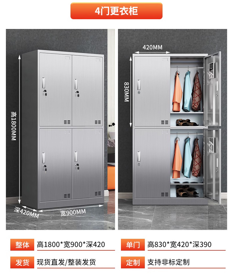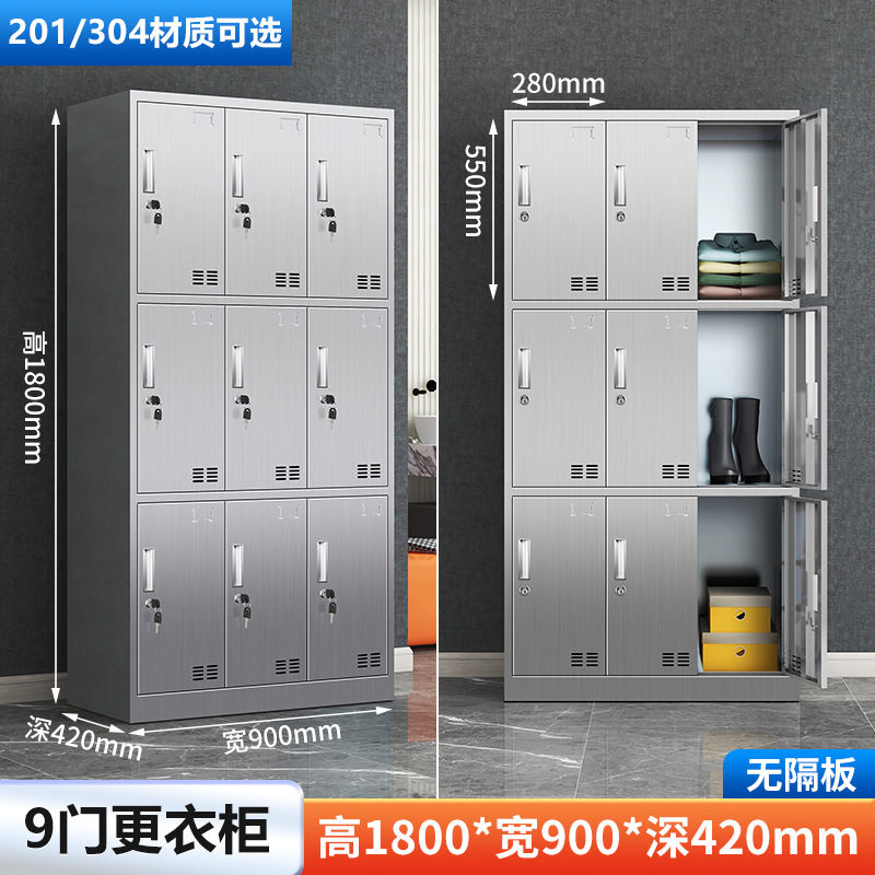 304 스테인리스 스틸 사물함, 무진실, 직원 기숙사, 욕실, 옷장, 식품 공장 다중 도어 수납장스토어 가기