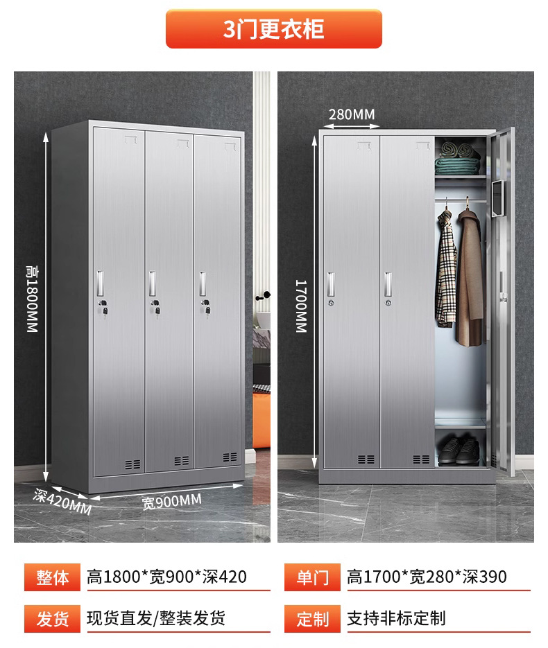 304 스테인리스 스틸 사물함, 무진실, 직원 기숙사, 욕실, 옷장, 식품 공장 다중 도어 수납장