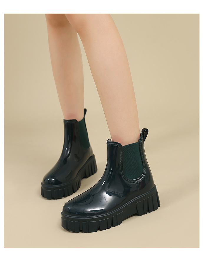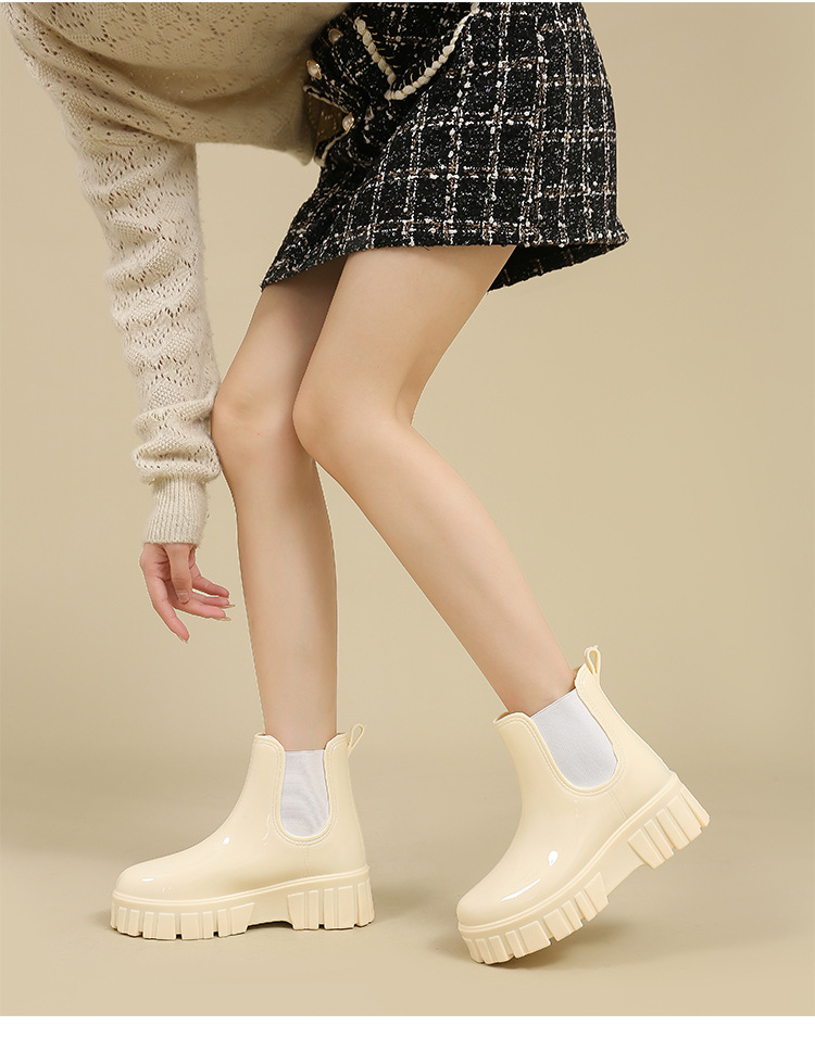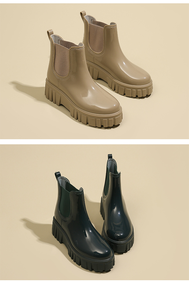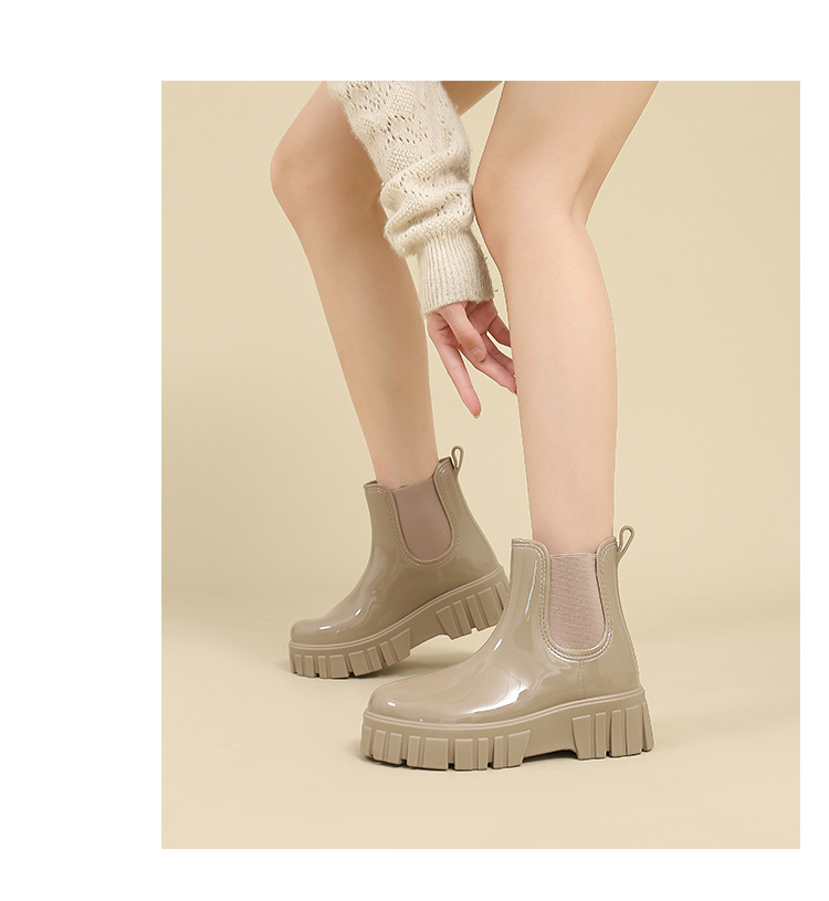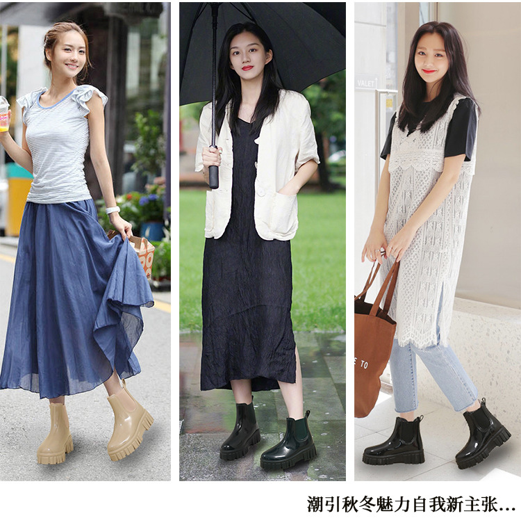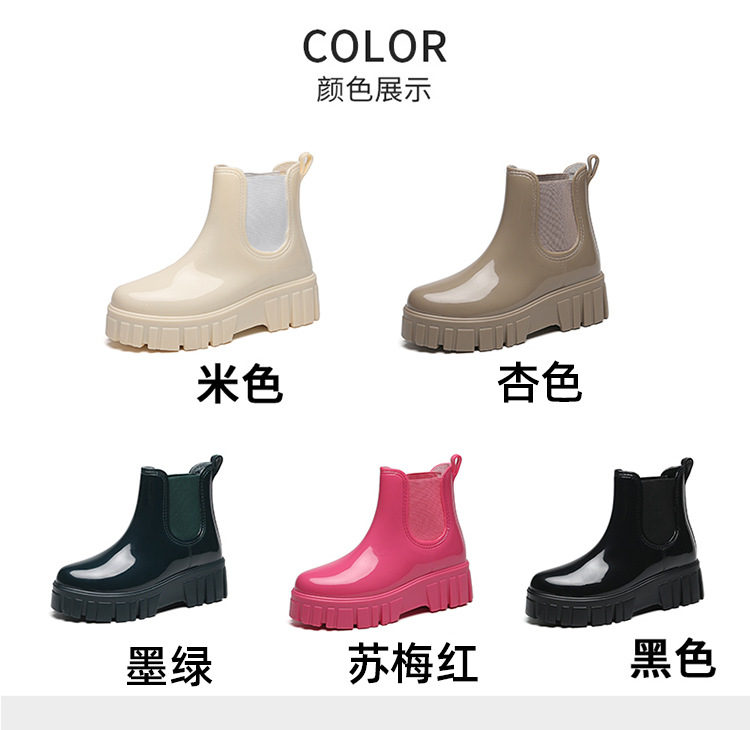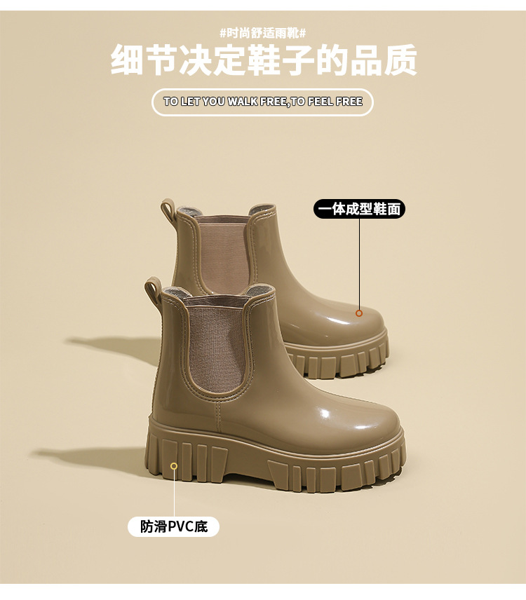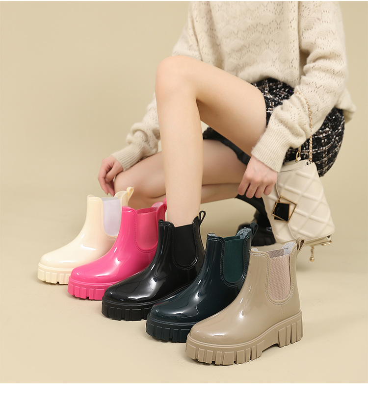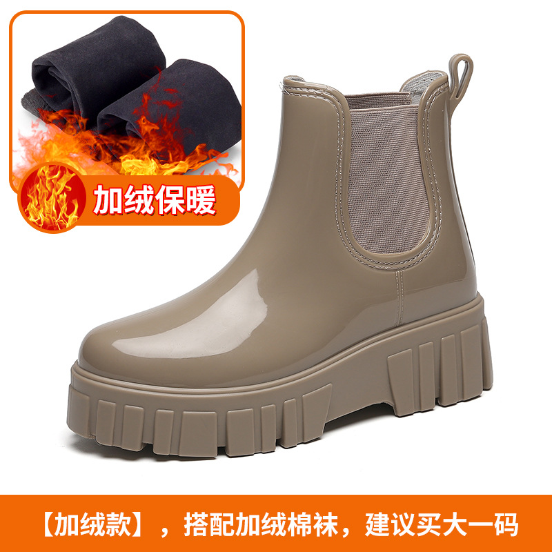가을과 겨울 기모 새로운 패션 미끄럼 방지 비 신발 여자의 그물 적외선 비 부츠 여자의 부드러운 바닥 주방 짧은 튜브 방수 신발