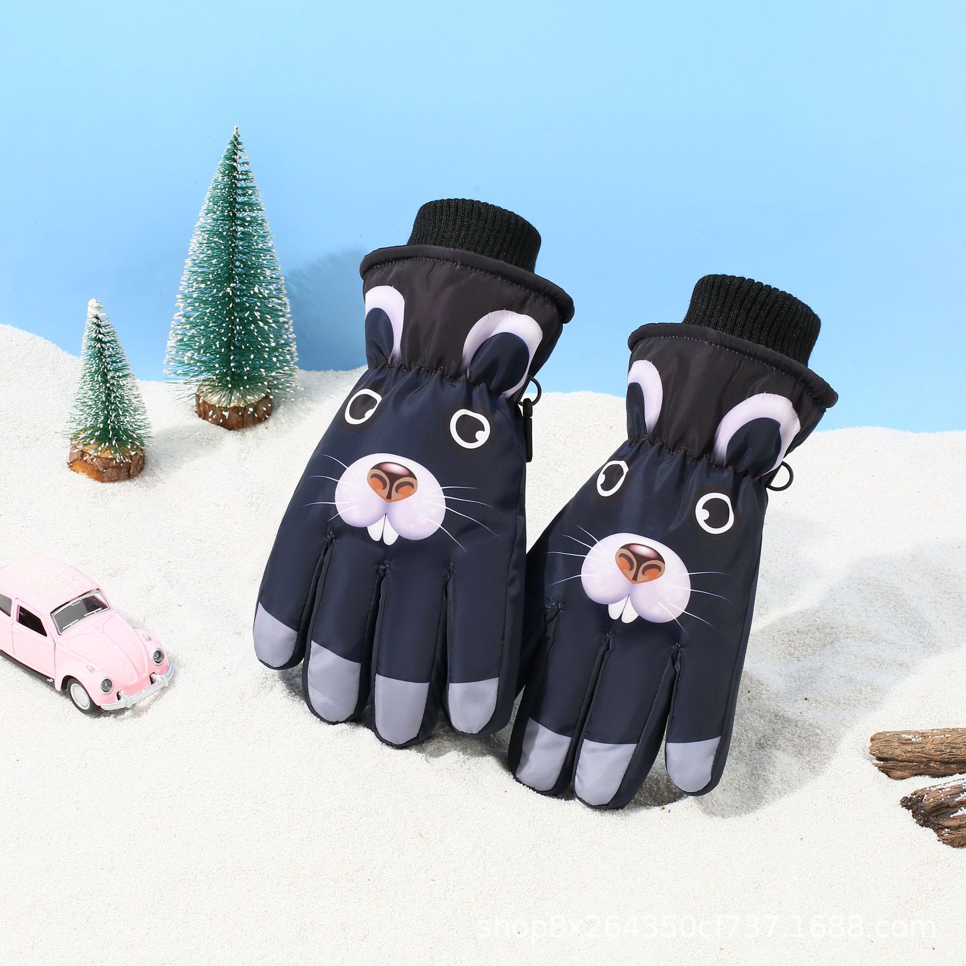 어린이 장갑 겨울 따뜻한 차가운 자전거 기모 두꺼운 방풍 학생 놀이 눈 방수 스키 장갑 귀여운 카드