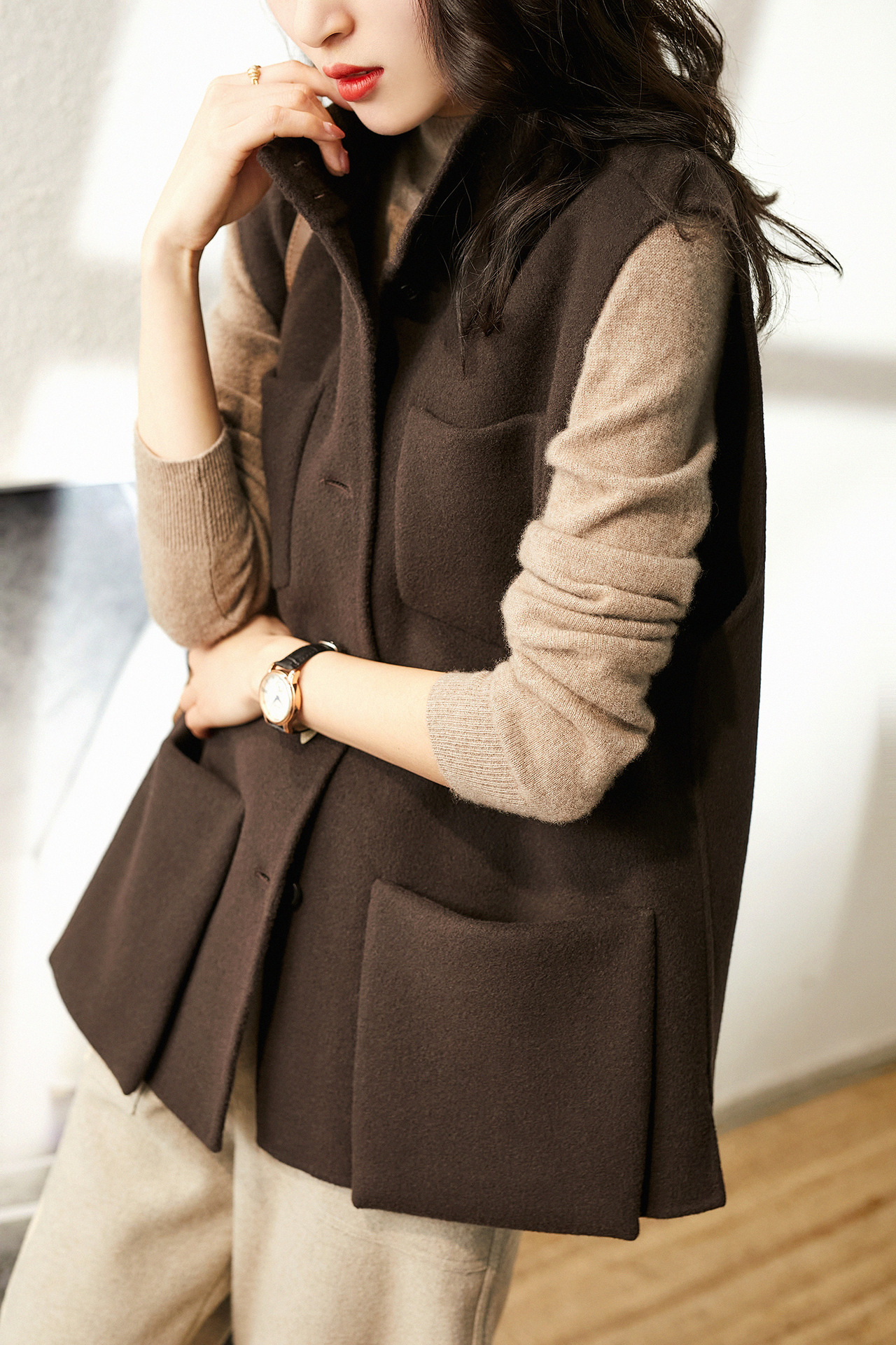 양면 울 조끼 여성용 짧은 스타일 2026 가을 겨울 신상 스타일리시 아우터 조끼 루즈핏 스탠드 칼라 보온 자켓스토어 가기