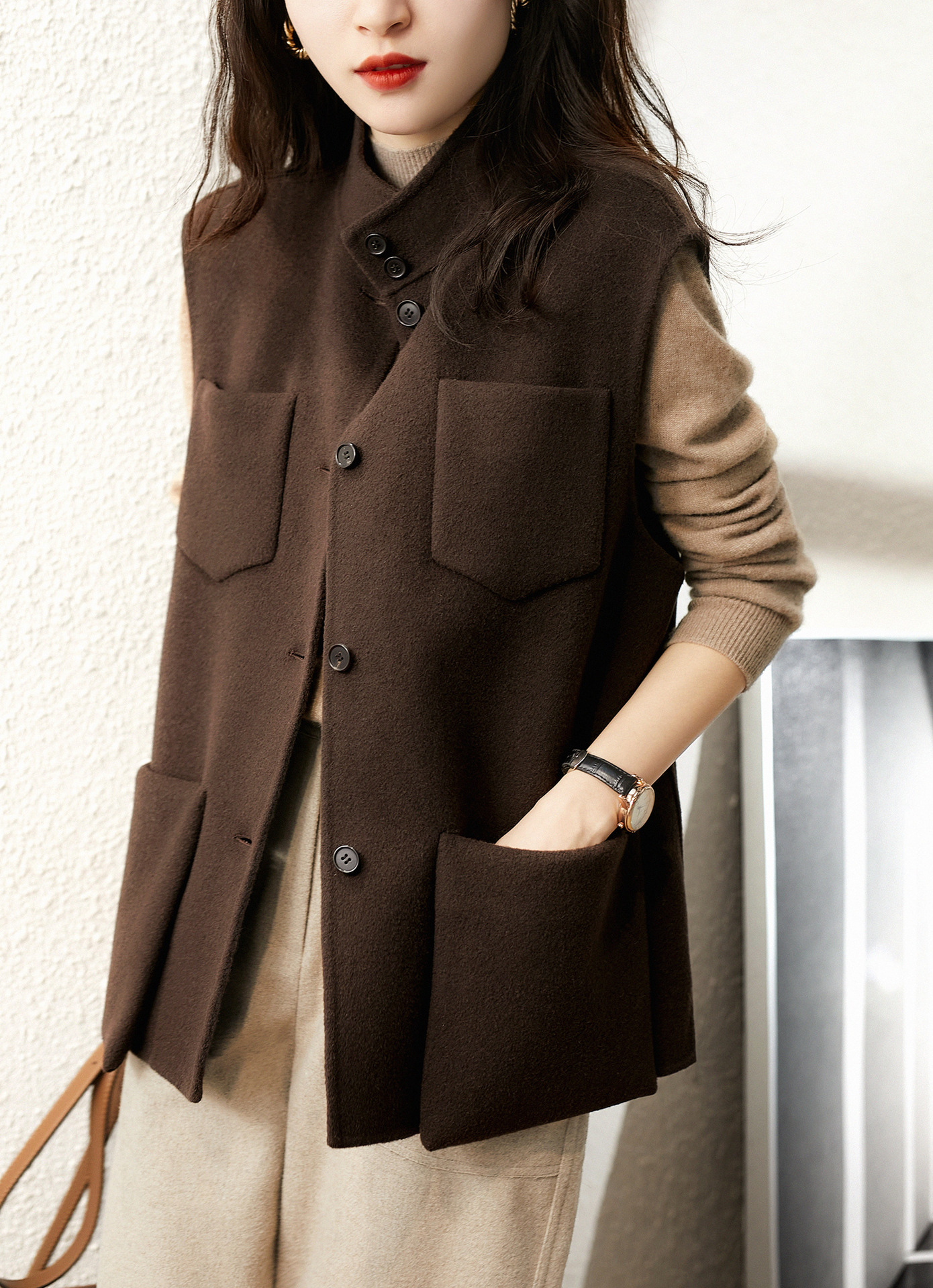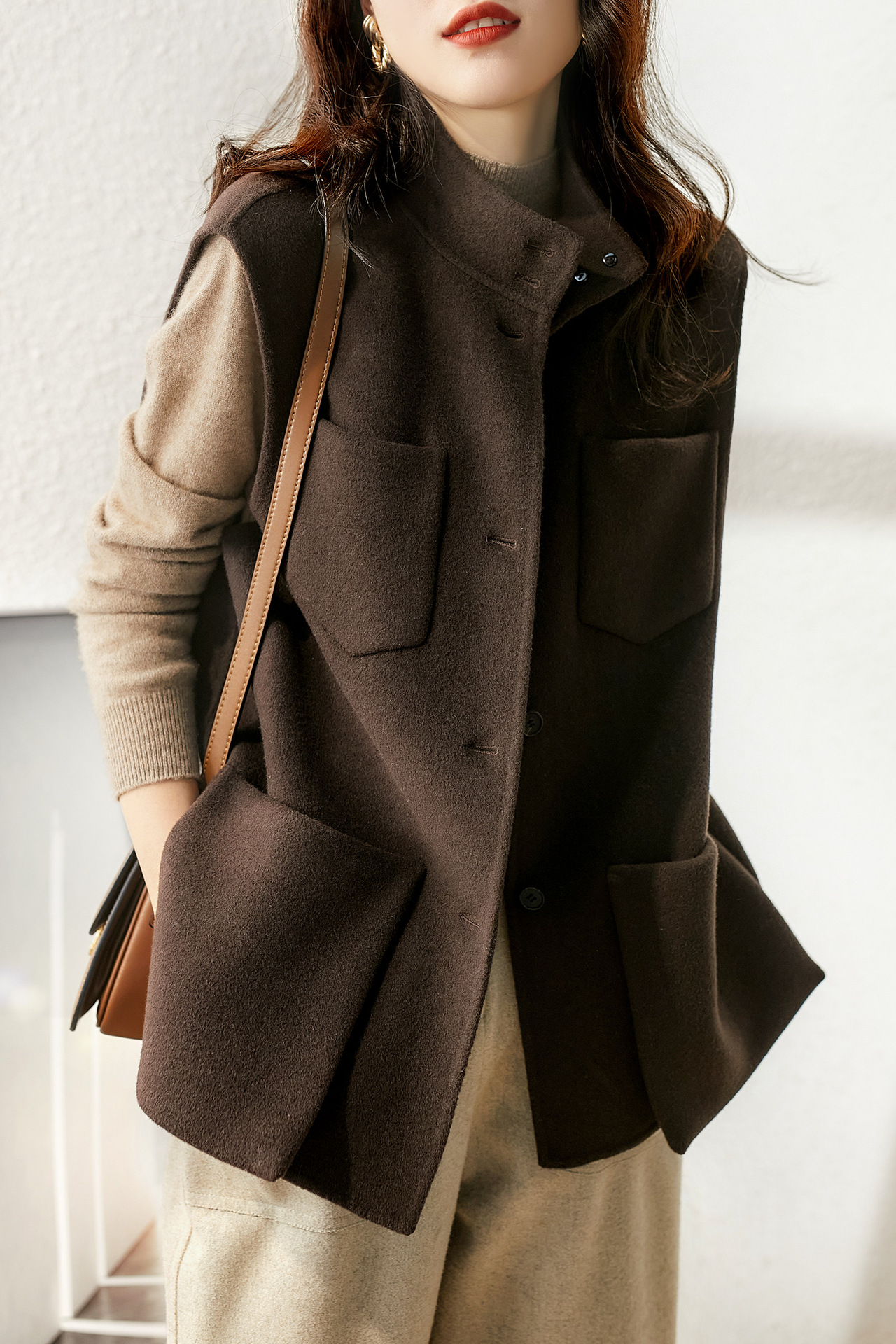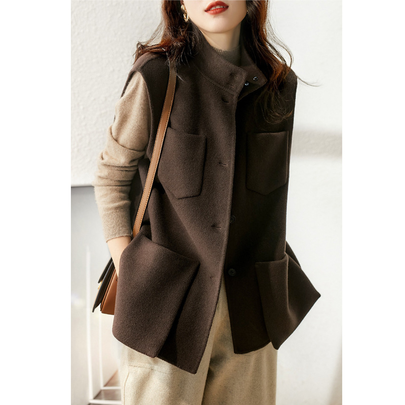 양면 울 조끼 여성용 짧은 스타일 2026 가을 겨울 신상 스타일리시 아우터 조끼 루즈핏 스탠드 칼라 보온 자켓