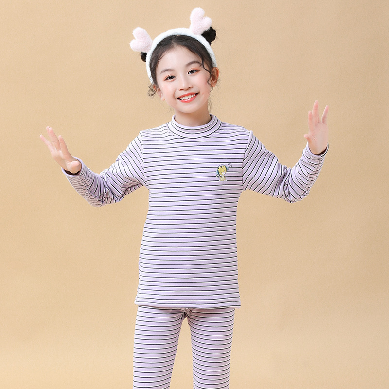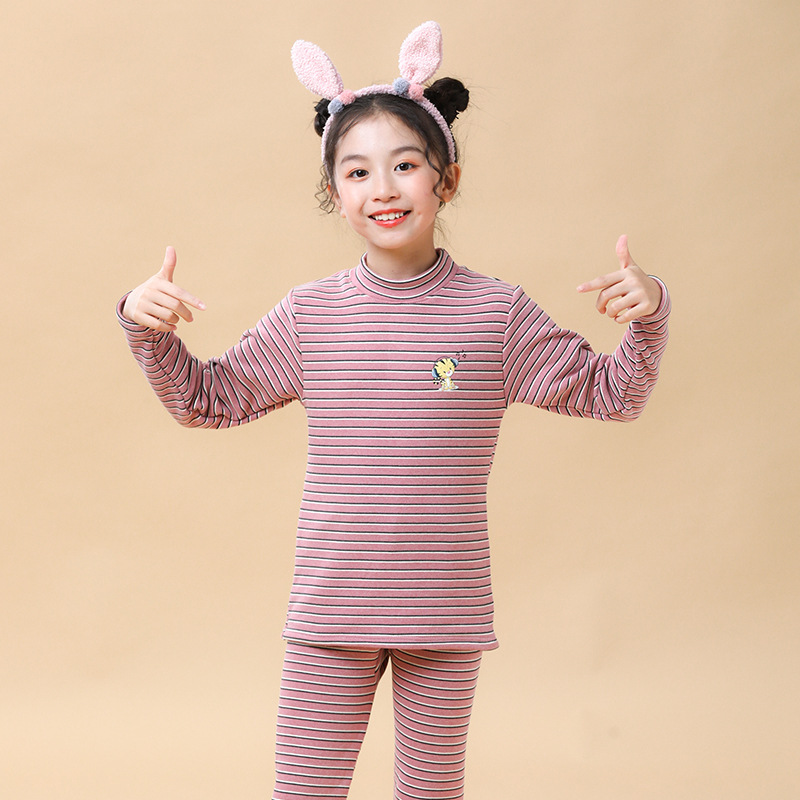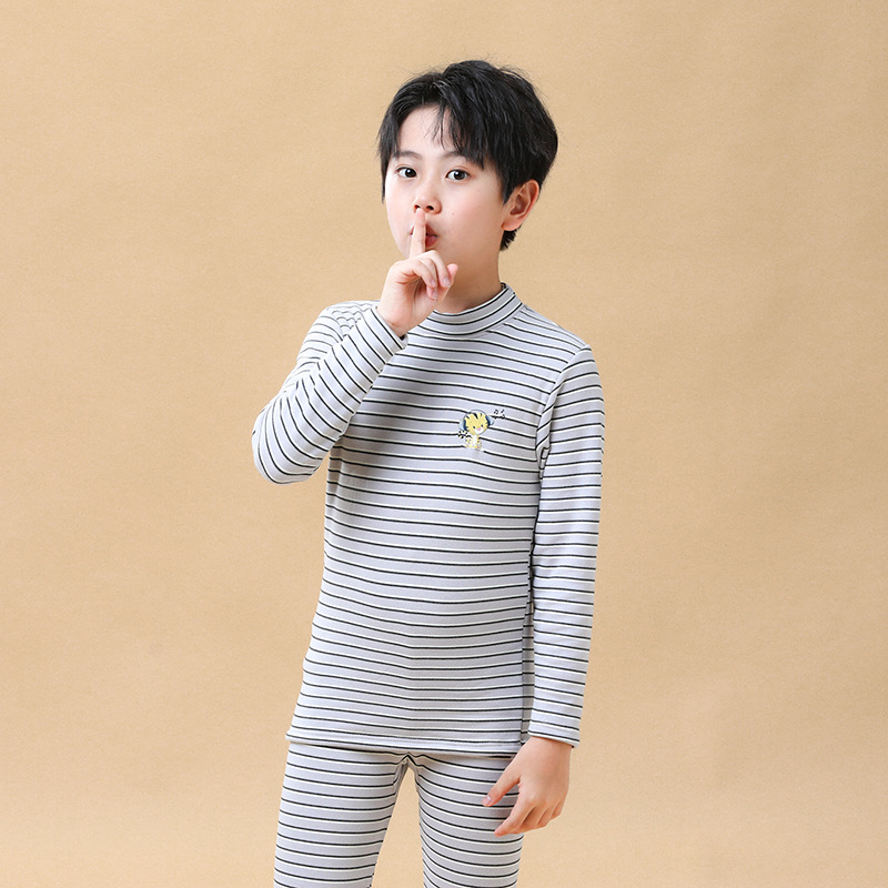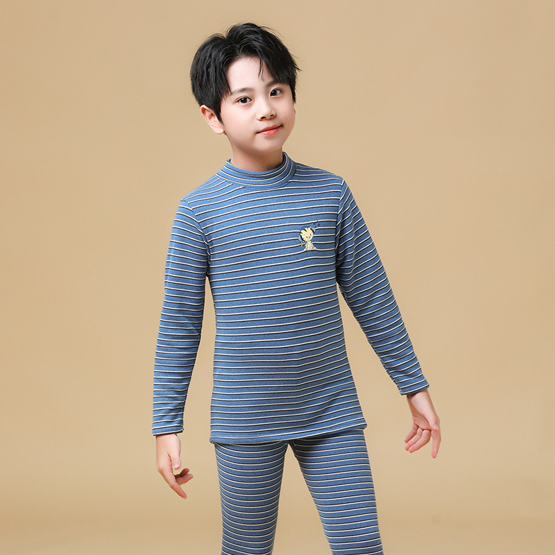 2022 가을과 겨울 어린이 열 속옷 세트 여자의 남자의 중간 칼라 기모 두꺼운 가정 옷 양고기 벨벳 가을 옷과 바지스토어 가기