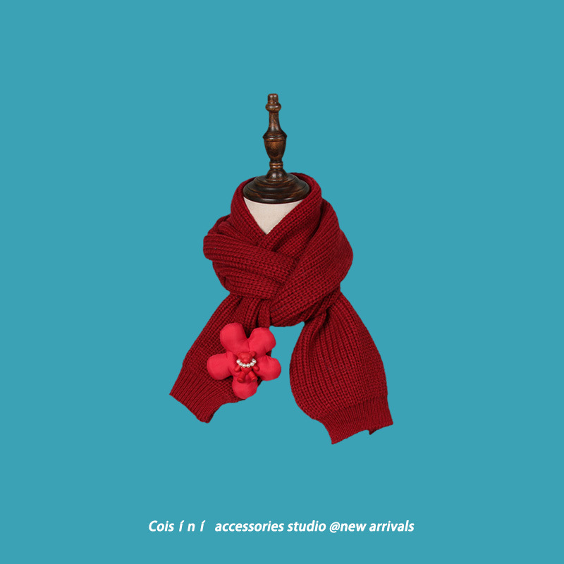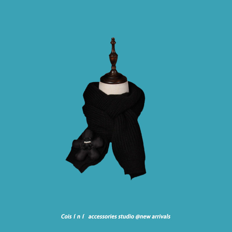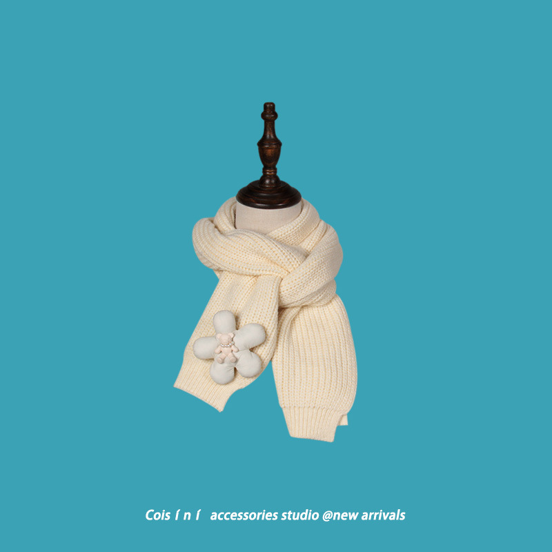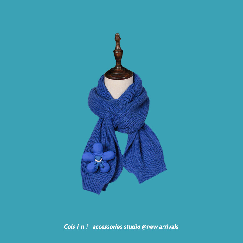 한국식 가을 겨울 여성용 뉴 클라인 블루 입체 플라워 베어 스카프 남성용 심플 신선한 학생 만능 스카프