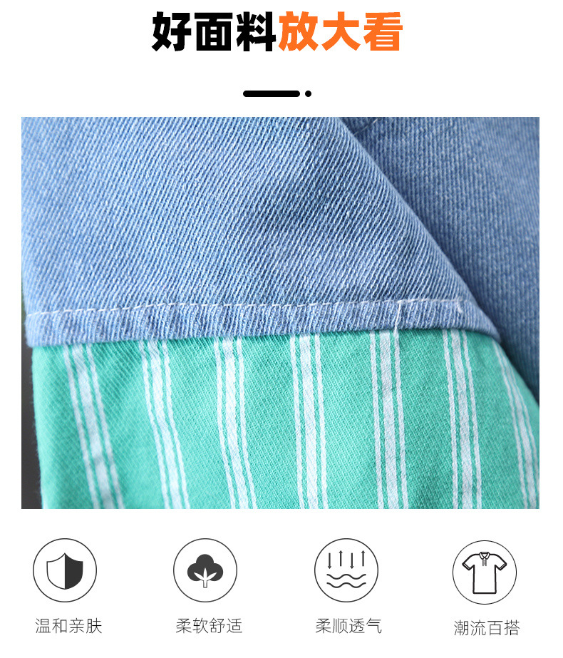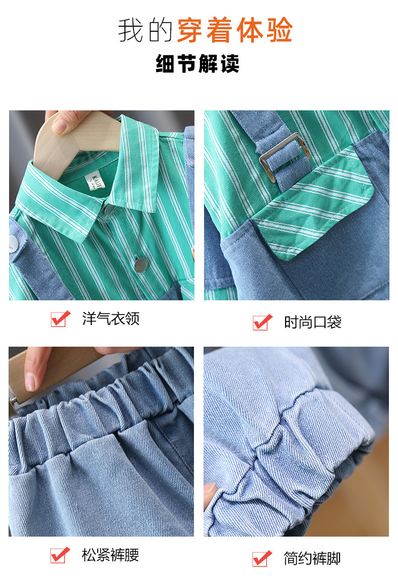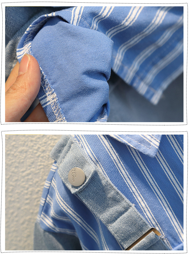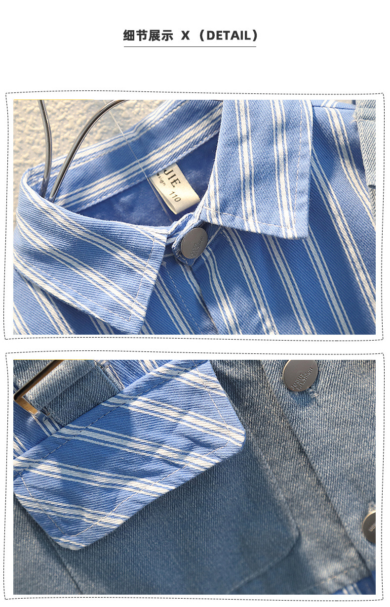 • 세로 줄무늬 셔츠 스티치 데님 2 피스 블루