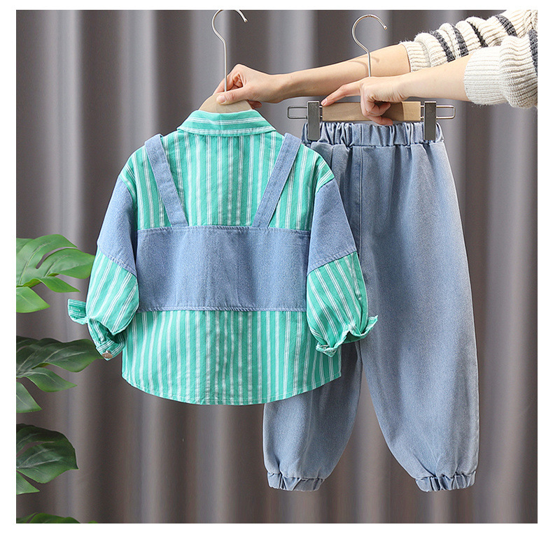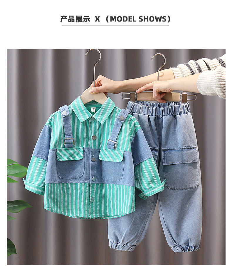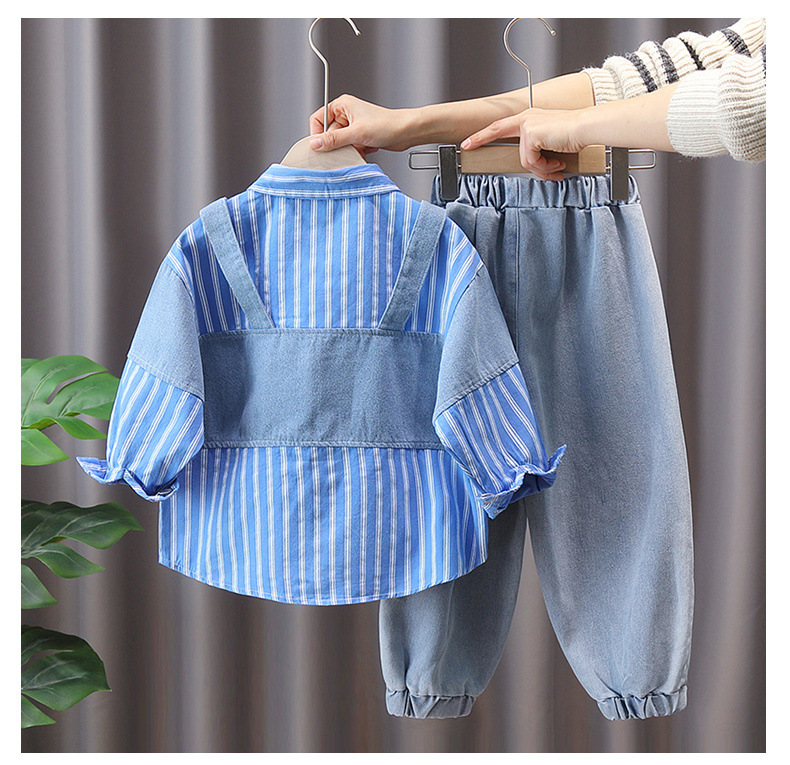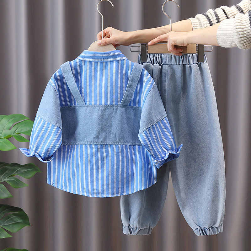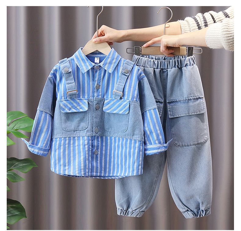 소년 가을 패션 가짜 투피스 세트 2023 새로운 서양 스타일 어린이 봄 튀김 거리 한국 스타일 패션 브랜드 봄과 가을 스타일스토어 가기