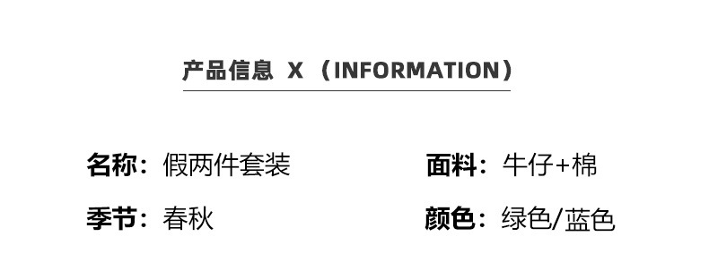 • 세로 줄무늬 셔츠 스티치 데님 2 종 세트 그린