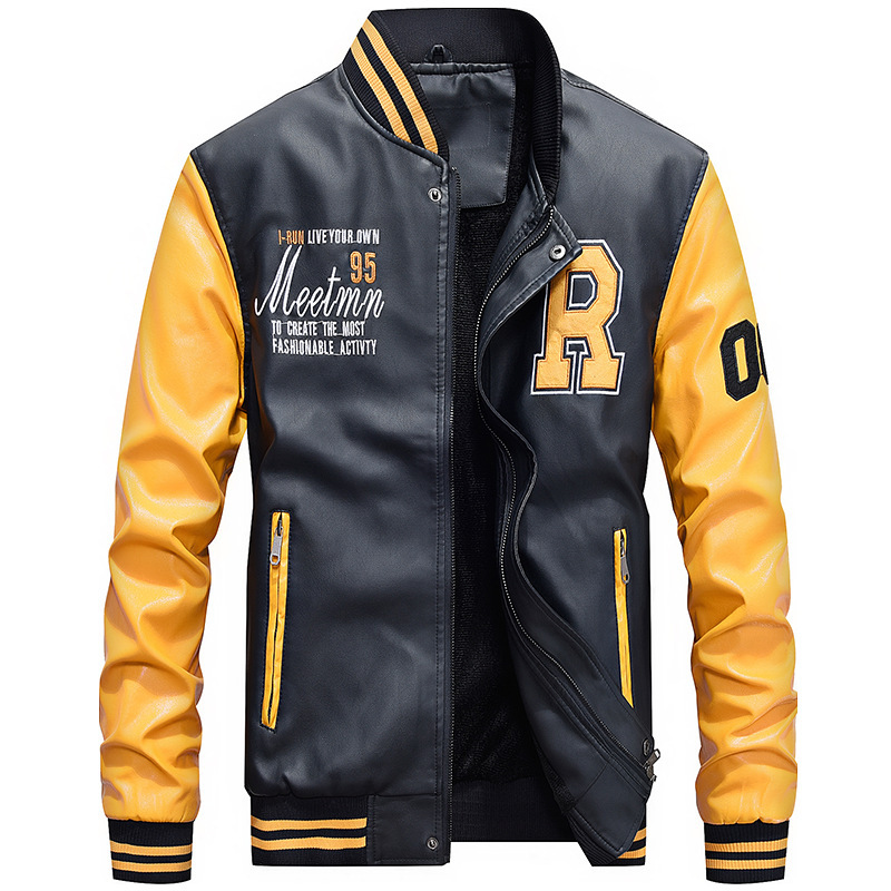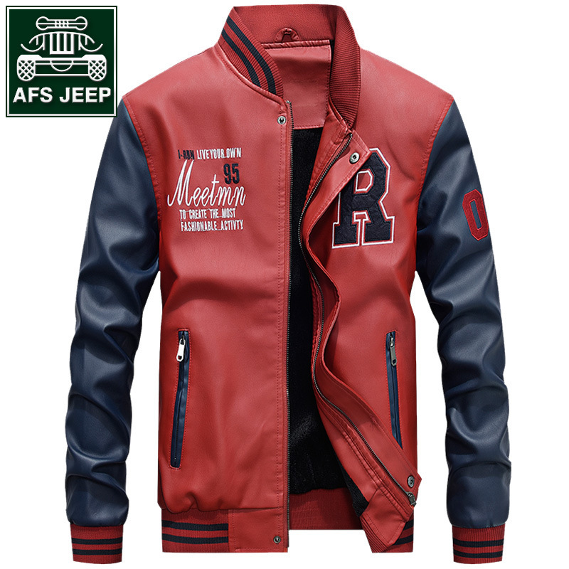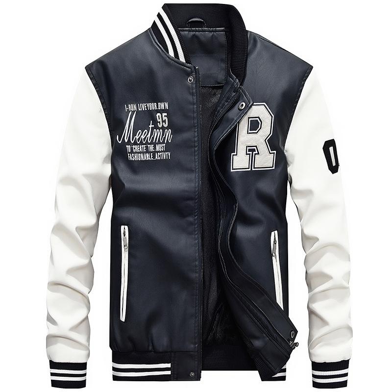 2020 가을과 겨울 새로운 가죽 남성용 기모 오토바이 가죽 자켓 트렌디 한 청소년 야구 유니폼 자수 가죽 자켓