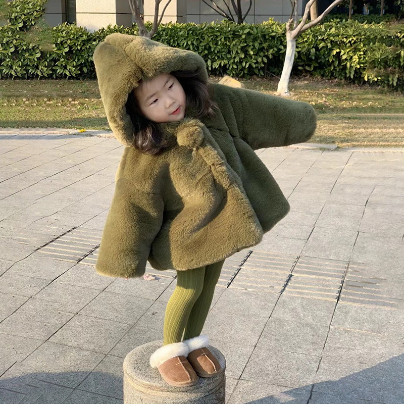 여아 그린 두꺼운 푹신한 코트 2022 가을과 겨울 새로운 소녀의 세련된 골드 밍크 캐시미어 코트스토어 가기