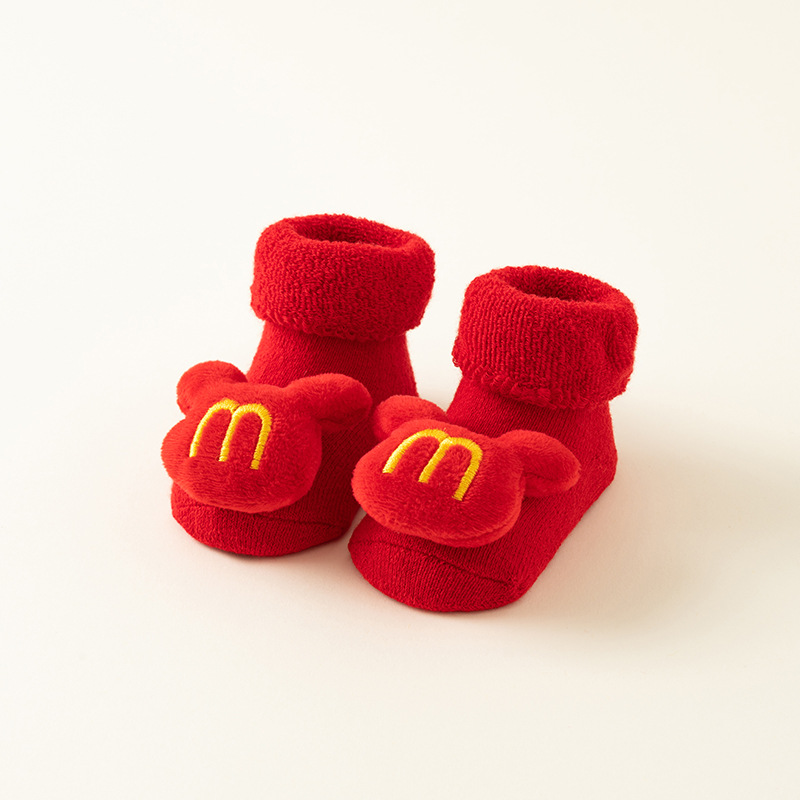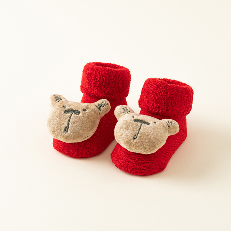 신생아 아기 양말 가을과 겨울 아기 따뜻한 기모 레드 테리 미끄럼 방지 크리스마스 바닥 양말 유아 양말 도매스토어 가기