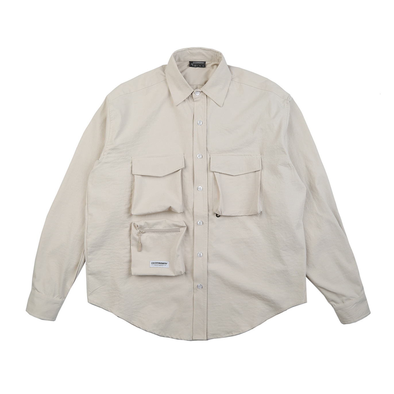 NP 남성복 일본 스타일 루즈핏 워크 셔츠 시티보이 기능성 멀티 포켓 셔츠 트렌디 브랜드 캐주얼 긴팔 셔츠
