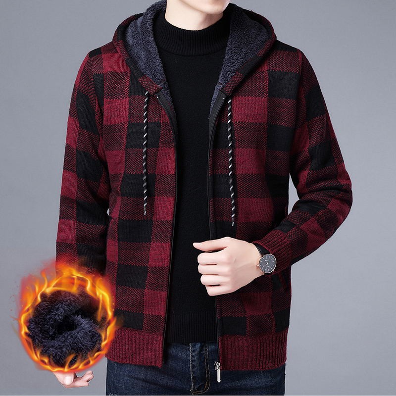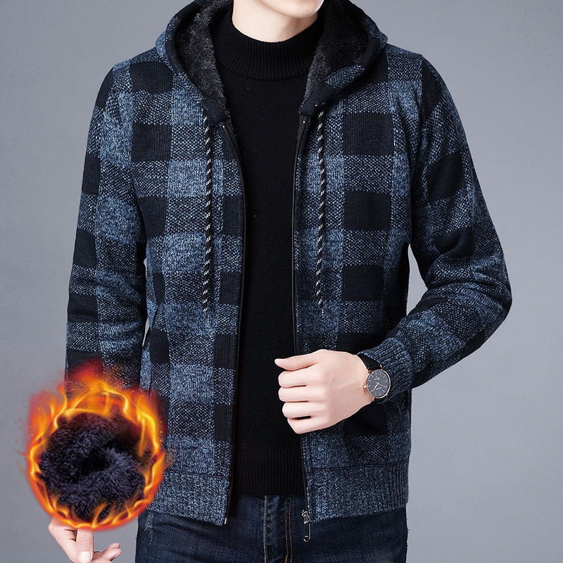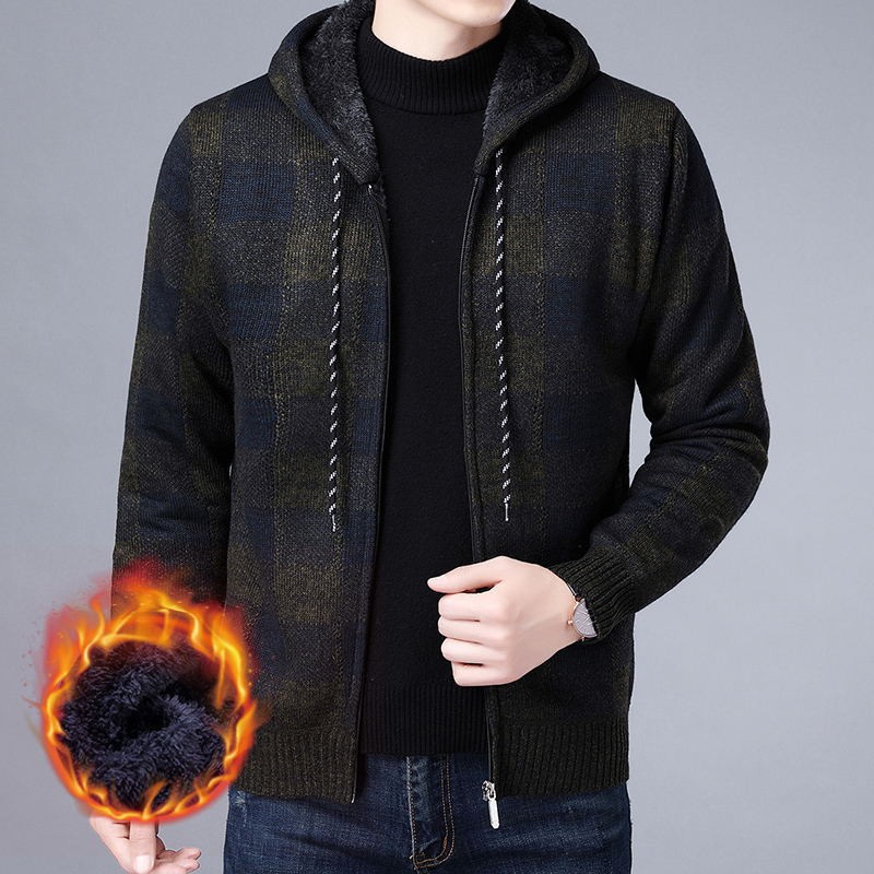 2022 겨울 새로운 크로스 보더 남성용 두꺼운 카디건 니트 스웨터 느슨한 따뜻한 후드 벨벳 코트
