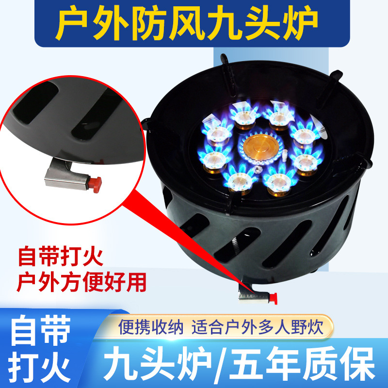 9 헤드 야외 스토브 공장 직접 전자 점화 9 성급 휴대용 맹렬한 방풍 가스 피크닉 캠핑 스토브