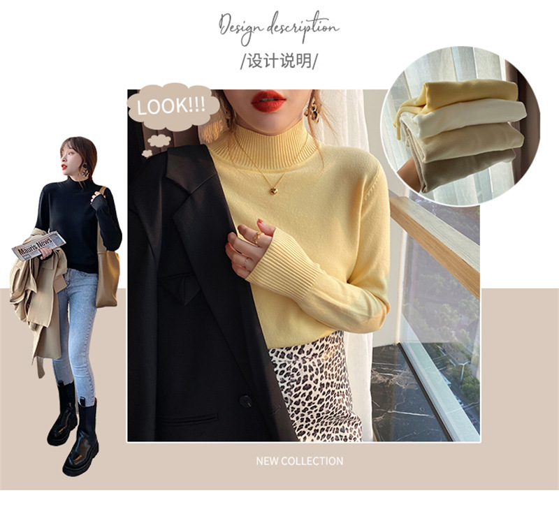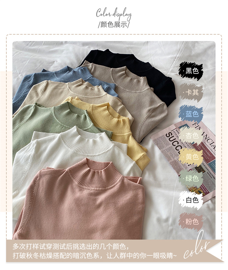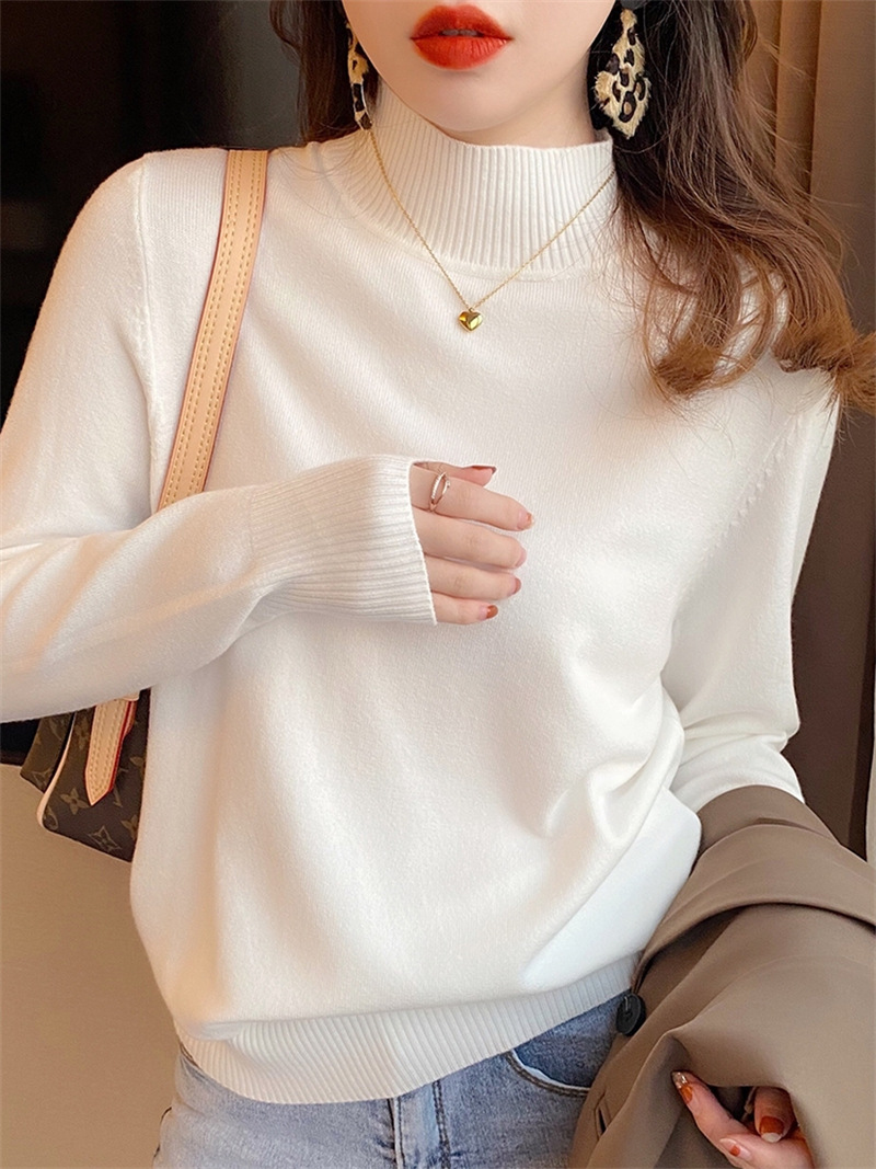 여성용 풀오버 스웨터, 가을 겨울 루즈한 아우터웨어, 하프 터틀넥 니트 베이스 레이어, 2025년 신상 스타일, 부드러운 이너웨어 탑