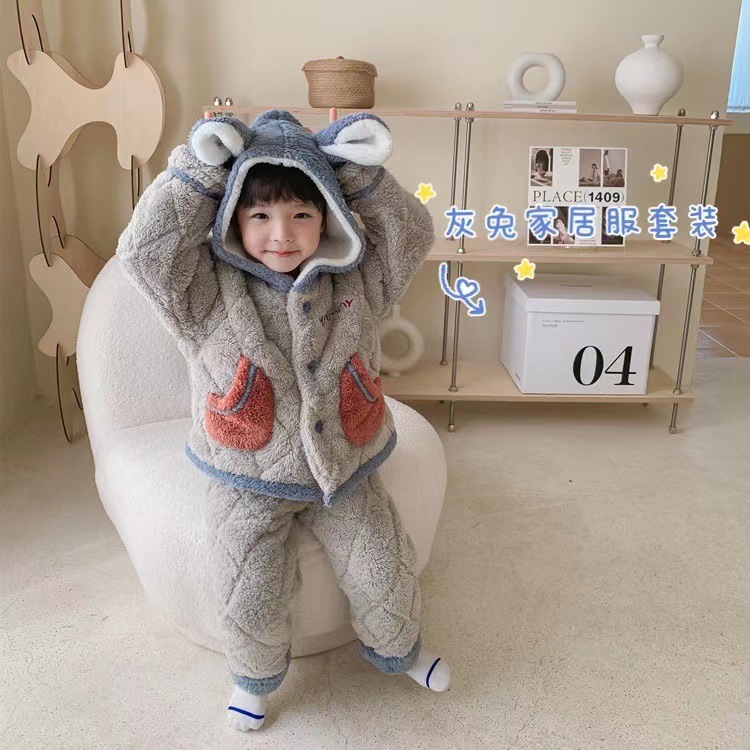 어린이 겨울 산호 양털 잠옷 3 층 플란넬 귀여운 소년 따뜻한 아기의 가정 옷 겨울 두꺼운 퀼트스토어 가기