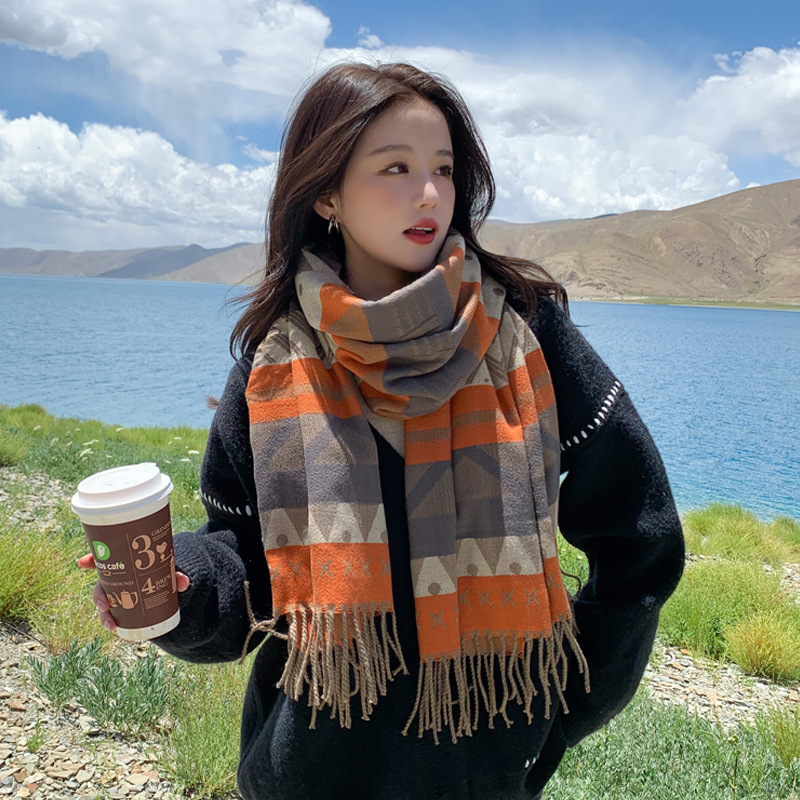 2022 새로운 가을과 겨울 캐시미어 모양의 두꺼운 스카프 학생 따뜻한 스카프 숄 패션 스트라이프 클래식 스카프