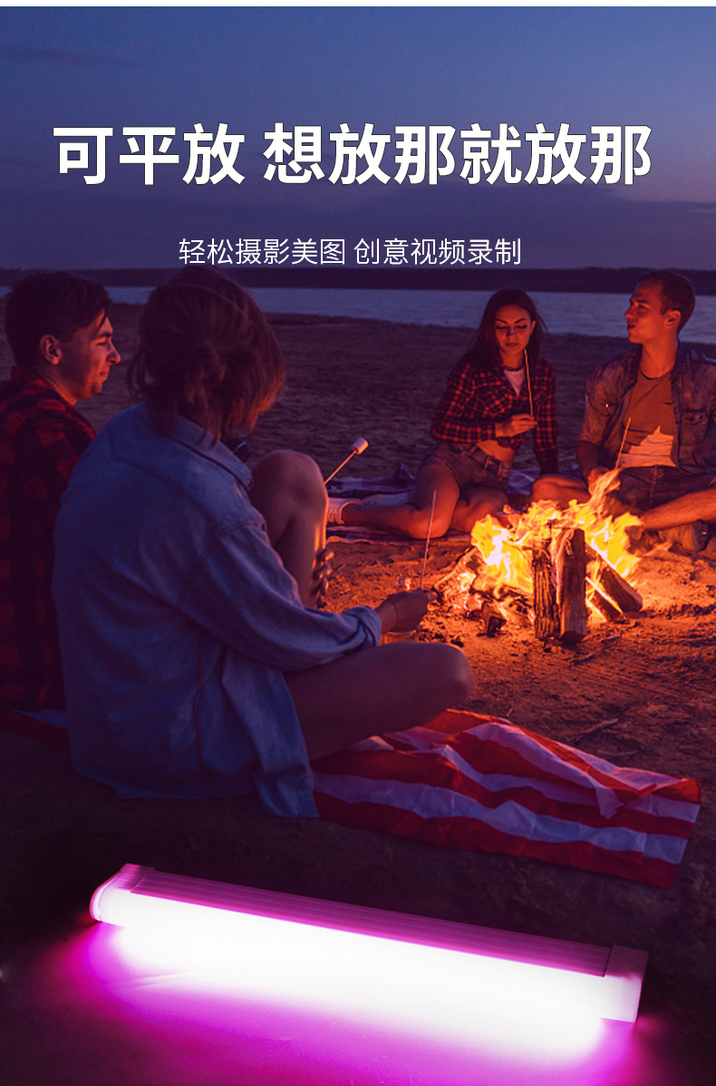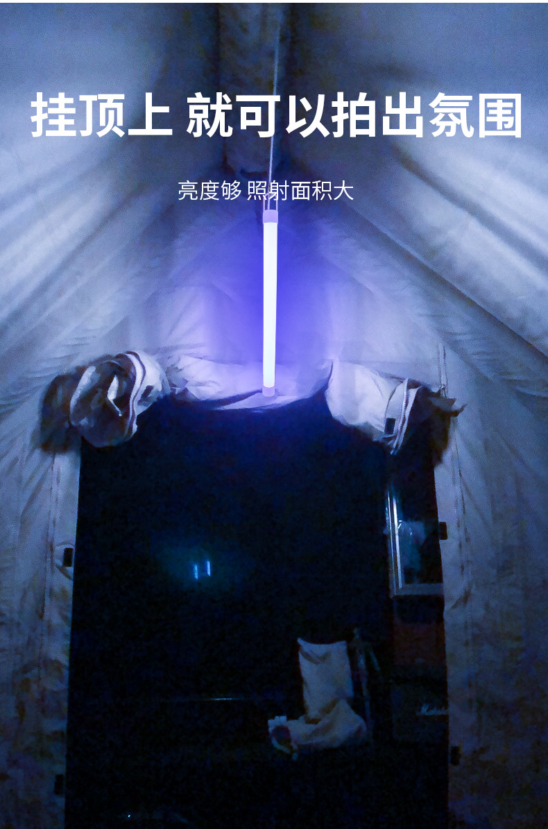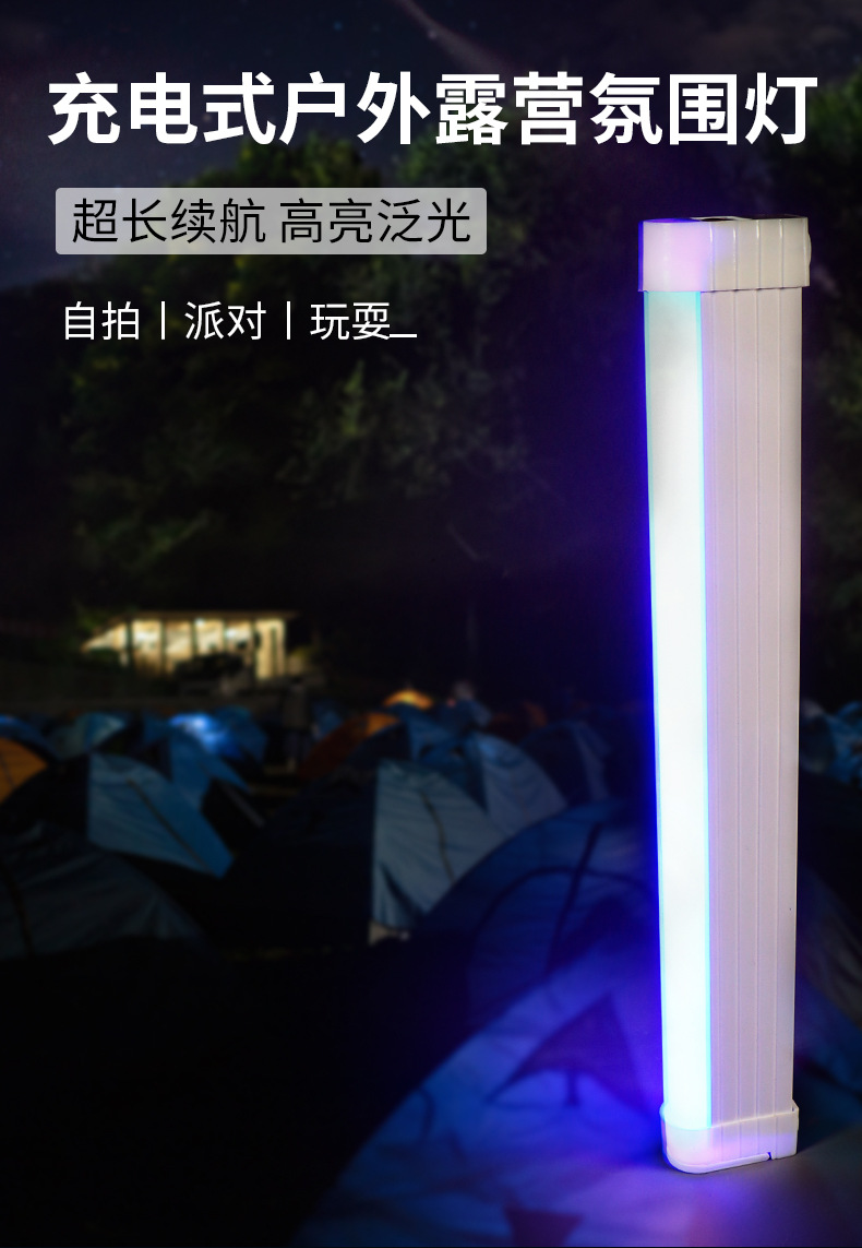 캠핑 분위기 가벼운 스틱 라이트 셀카 라이브 댄스 배경 장식 led 충전 후크 텐트 usb 흡착 블루 파우더스토어 가기