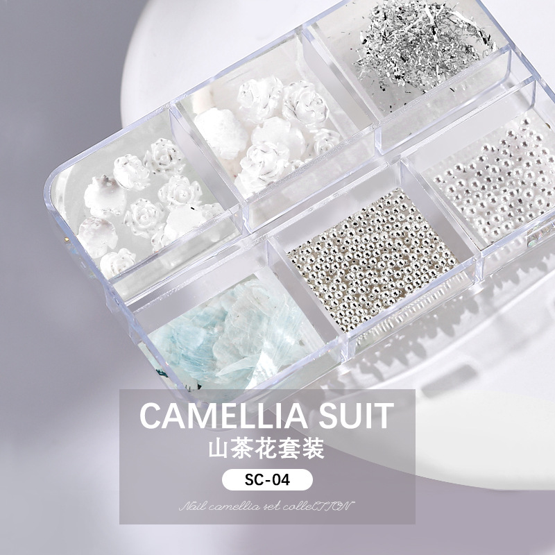 매니큐어 동백 도자기 화이트 매직 컬러 장미 꽃 6 그리드 세트 박스 진주 스틸 볼 뾰족한 다이아몬드 체인 네일 장식