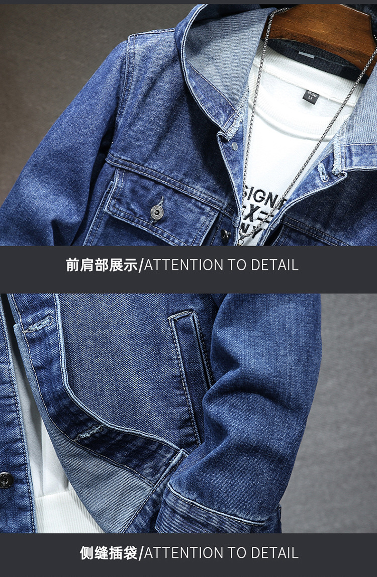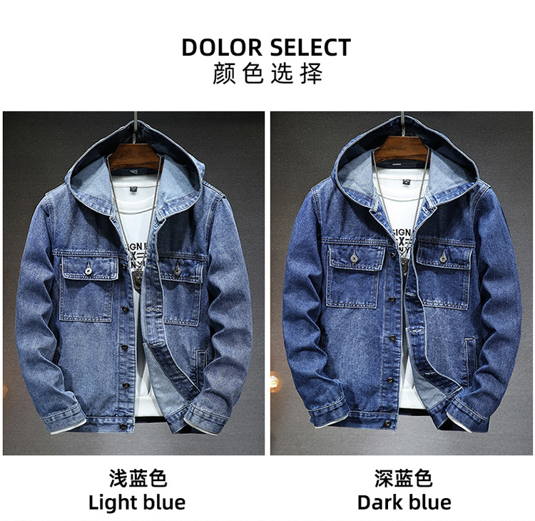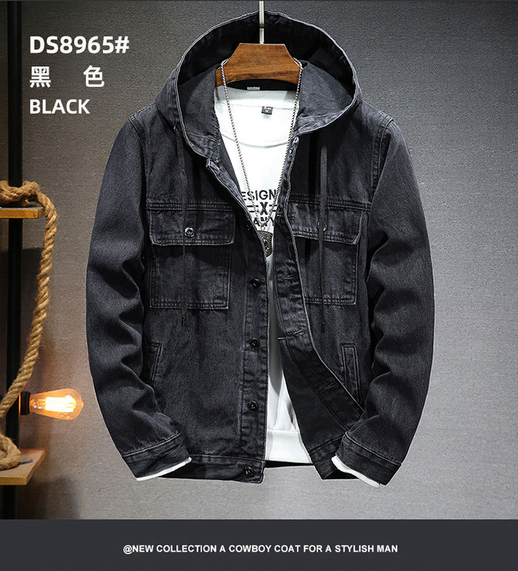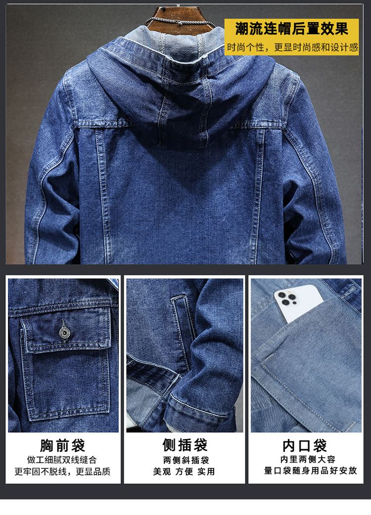 국경 새 남성 자켓 2025 봄 스트리트 패션 남성 탑 방풍 장착 후드 데님 자켓 남성용스토어 가기