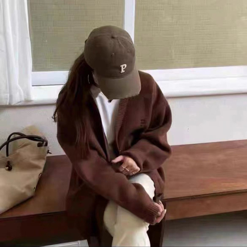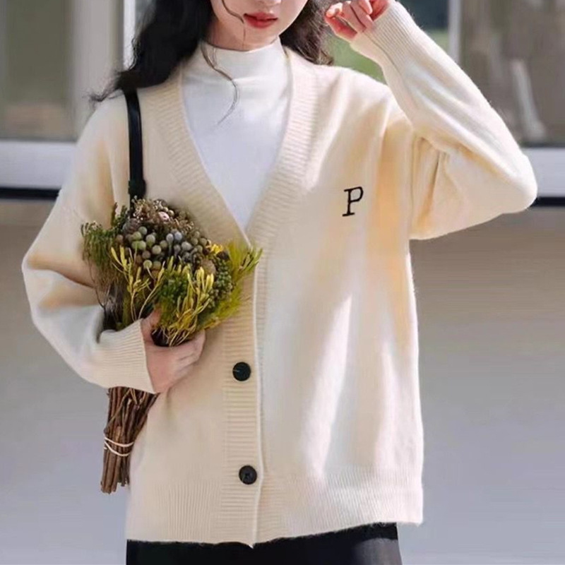 한국 동대문 2022 새로운 복고풍 게으른 느슨한 긴 소매 니트 카디건 편지 자수 스웨터 재킷스토어 가기