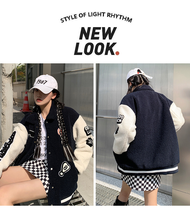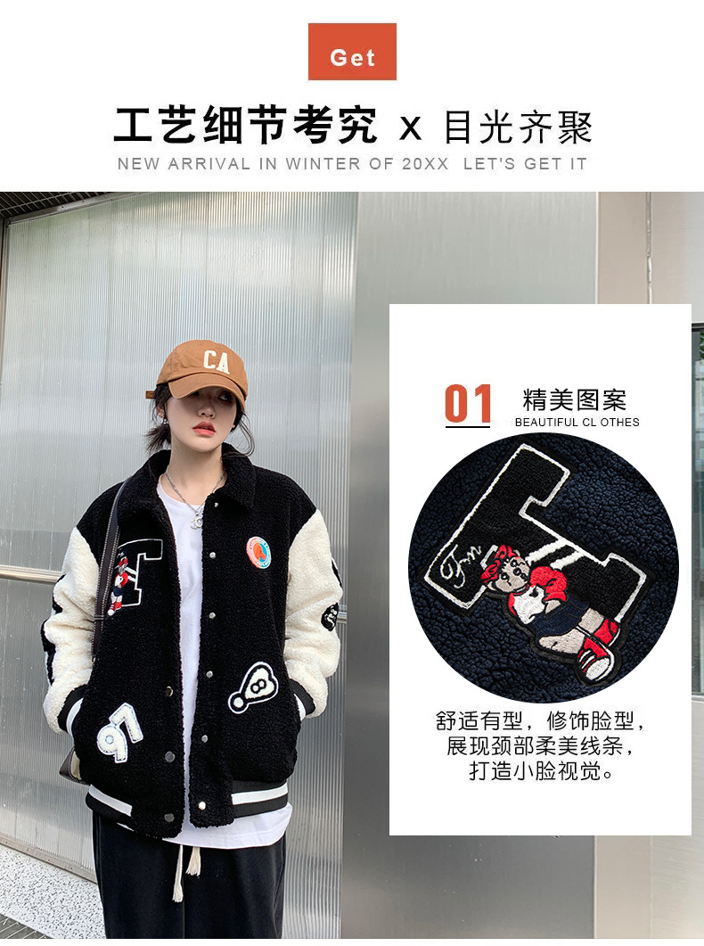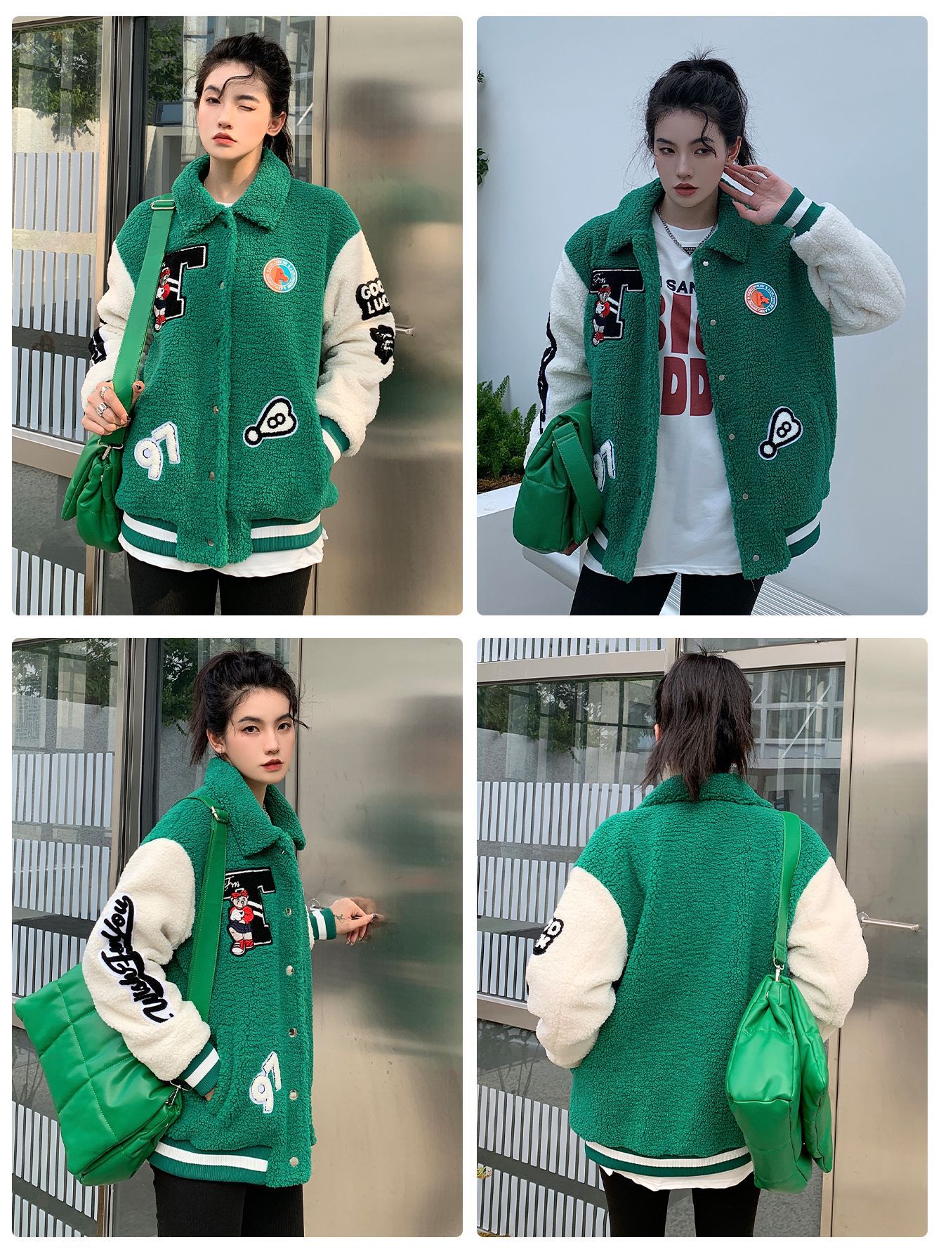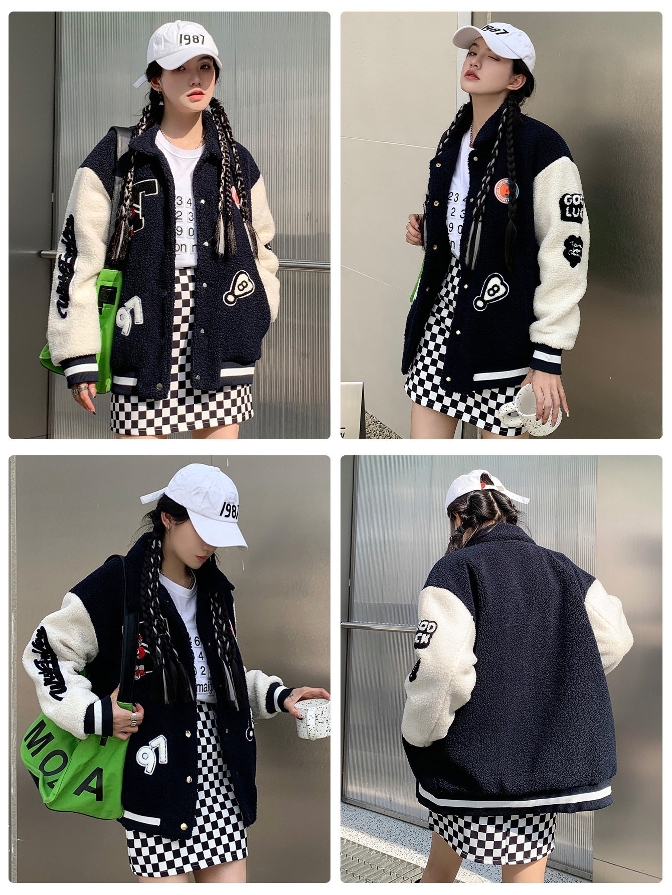 가을, 겨울 양털 야구 재킷 여성 자수 양털 재킷 두꺼운 따뜻한 유행 브랜드 크로스 보더스토어 가기