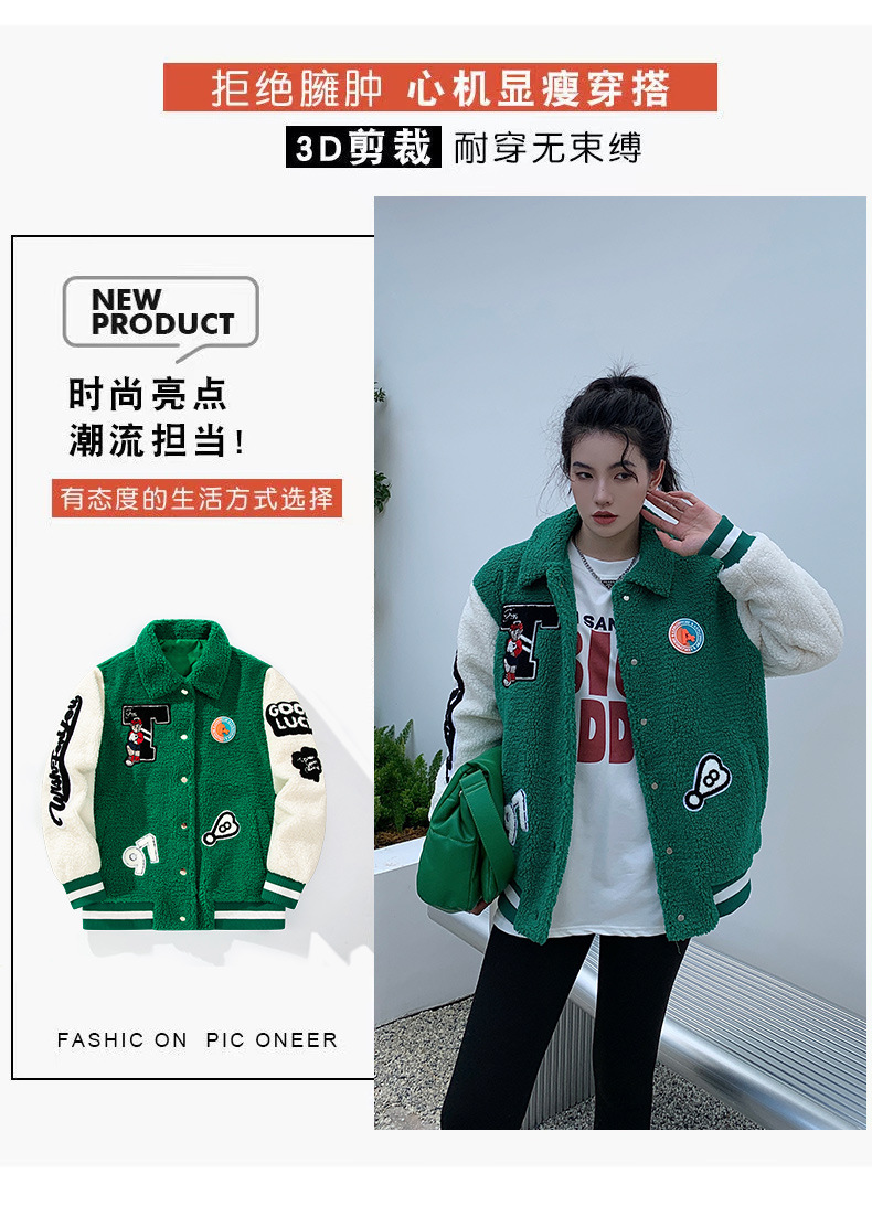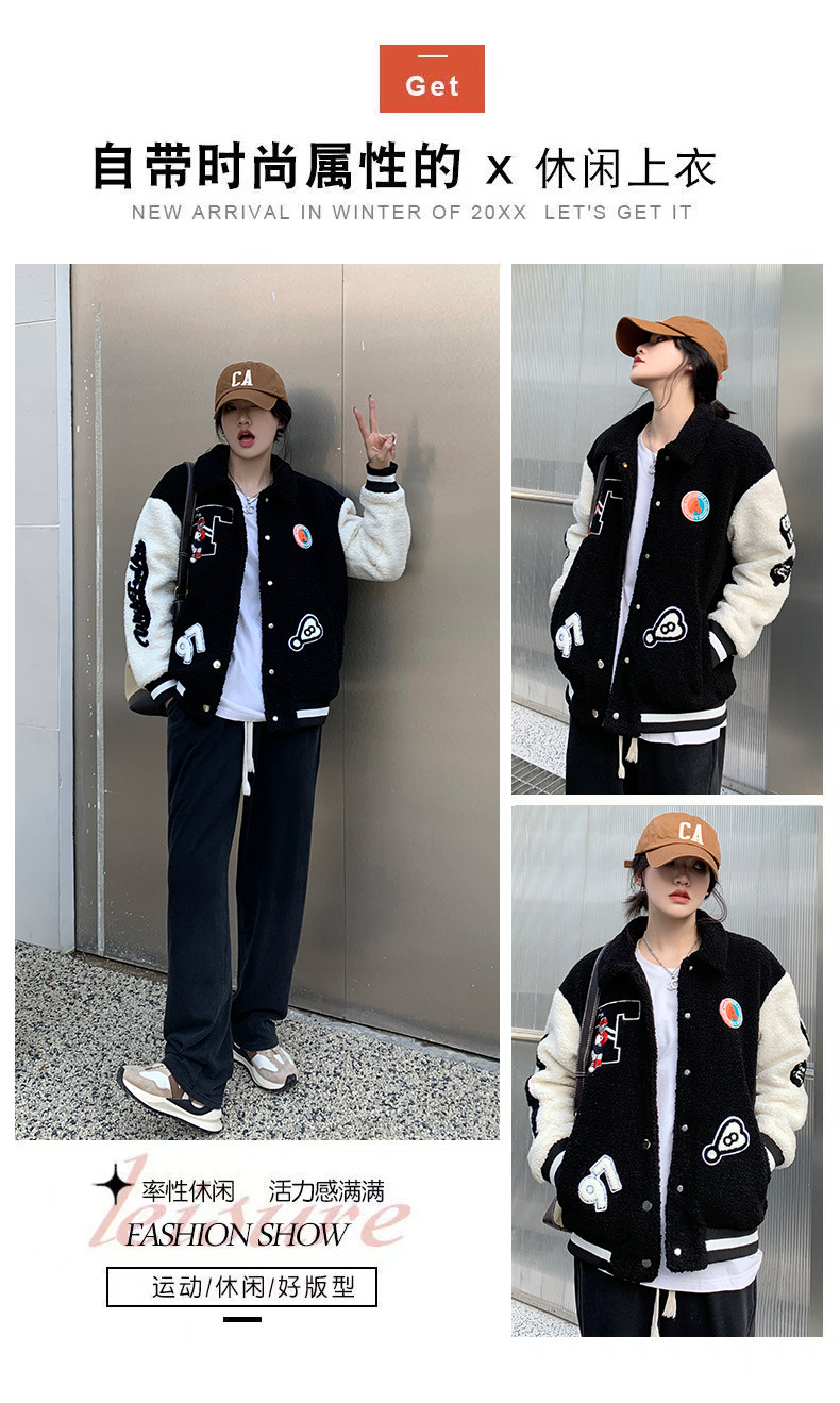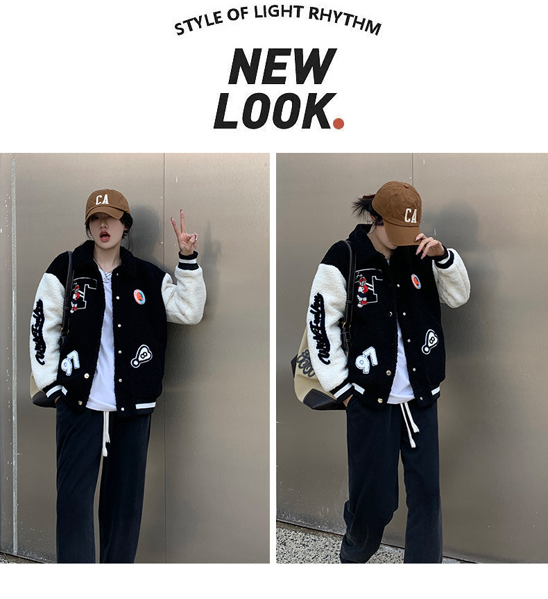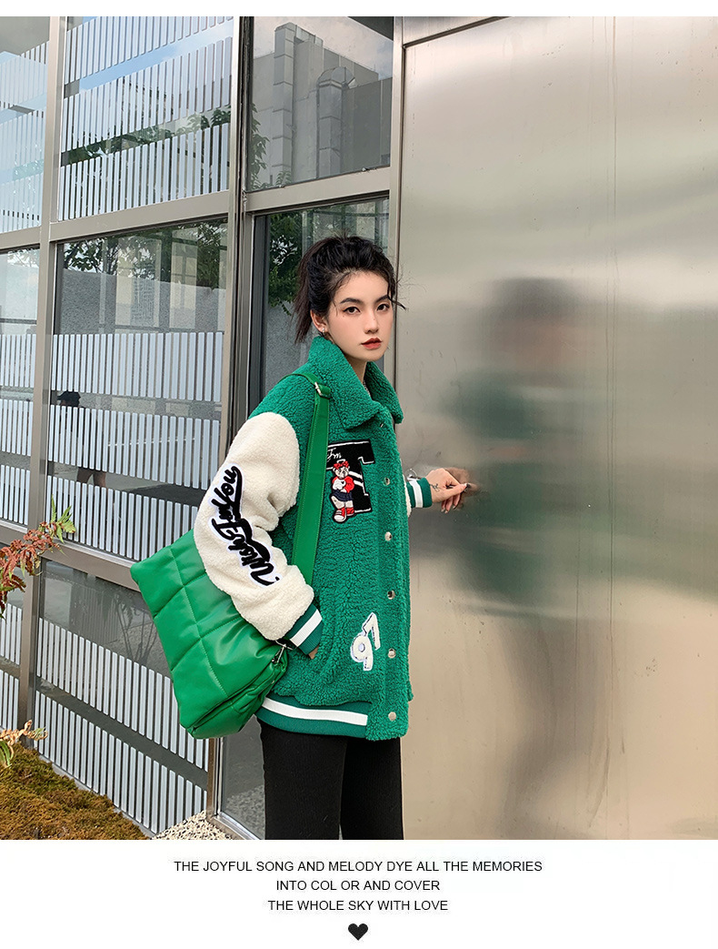 가을, 겨울 양털 야구 재킷 여성 자수 양털 재킷 두꺼운 따뜻한 유행 브랜드 크로스 보더스토어 가기
