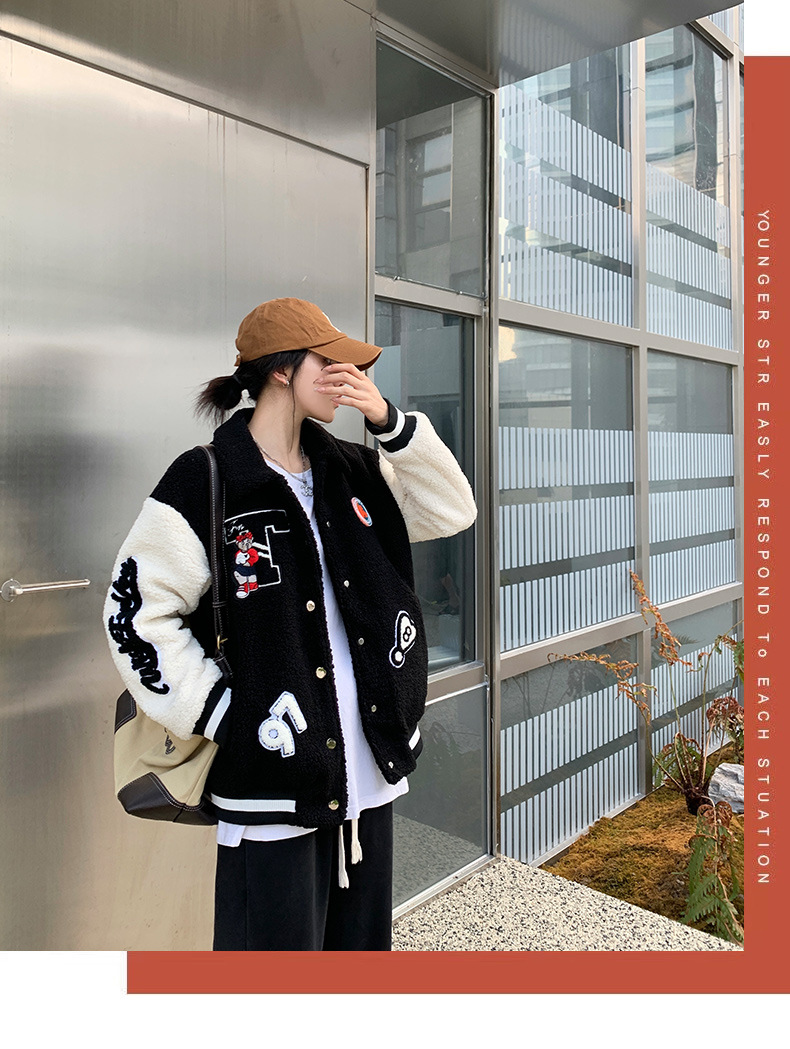 가을, 겨울 양털 야구 재킷 여성 자수 양털 재킷 두꺼운 따뜻한 유행 브랜드 크로스 보더