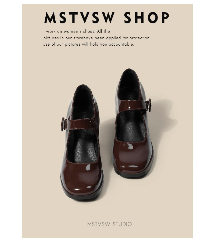 메리 제인 신발 여성용 레트로 영국 스타일 햅번 블랙 하이힐 원 버클 두꺼운 굽 스퀘어 토 슈즈 여성스토어 가기
