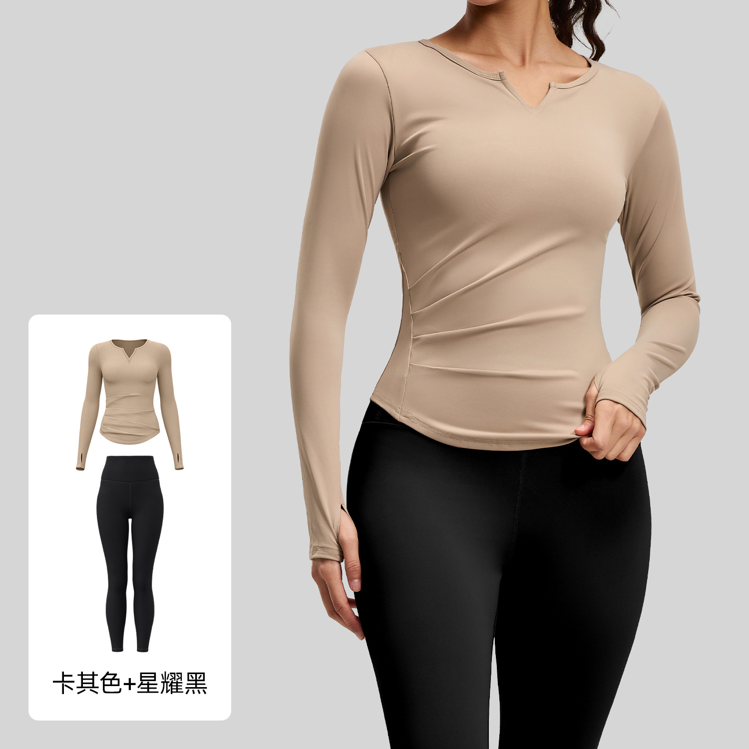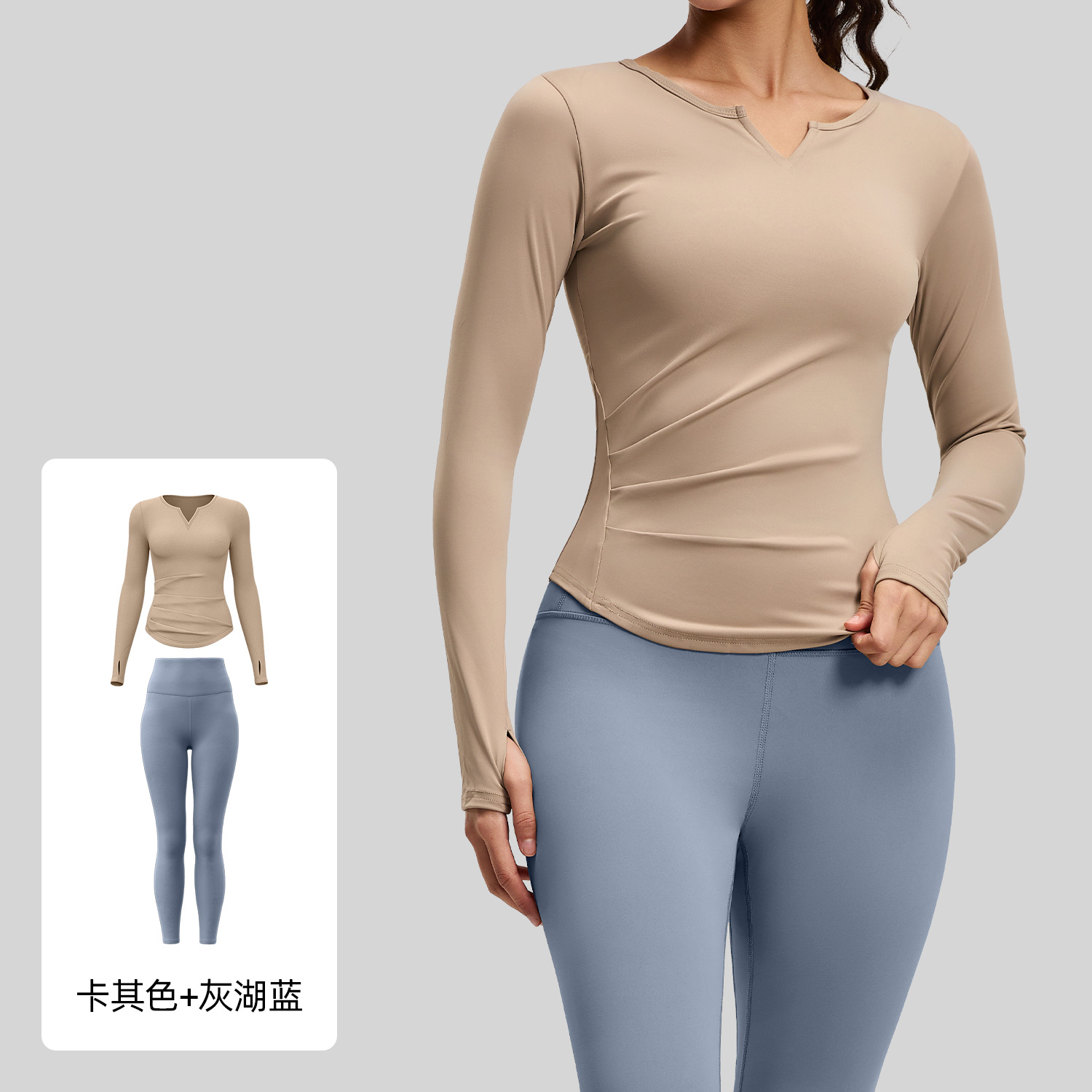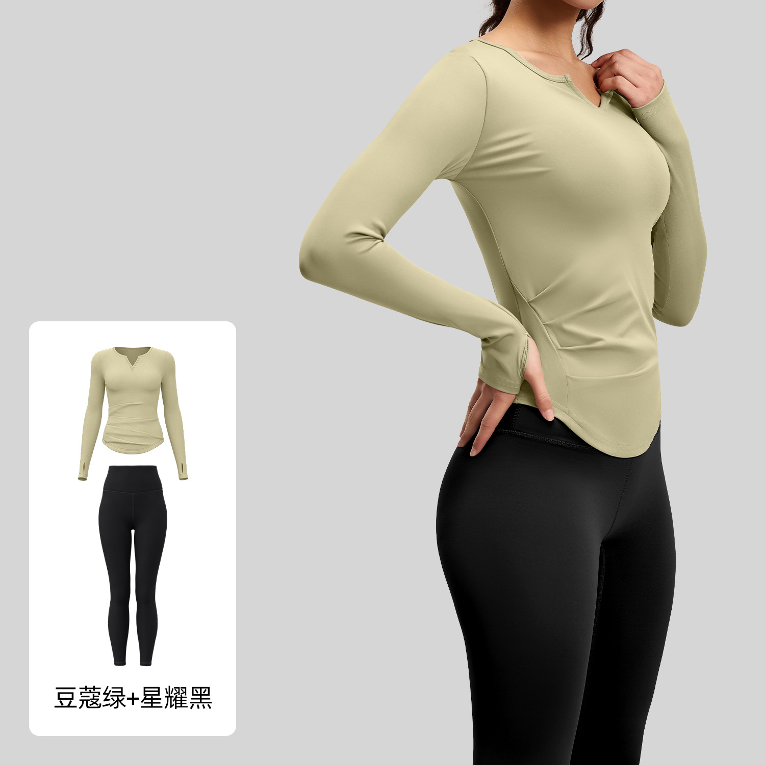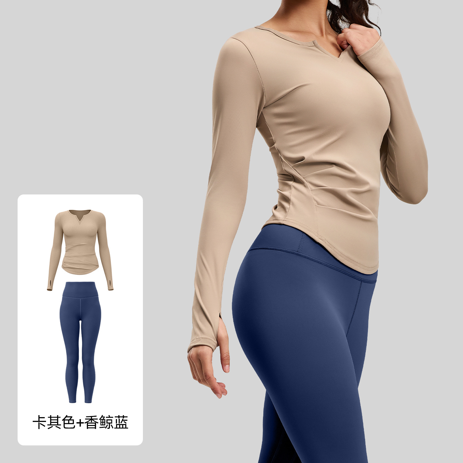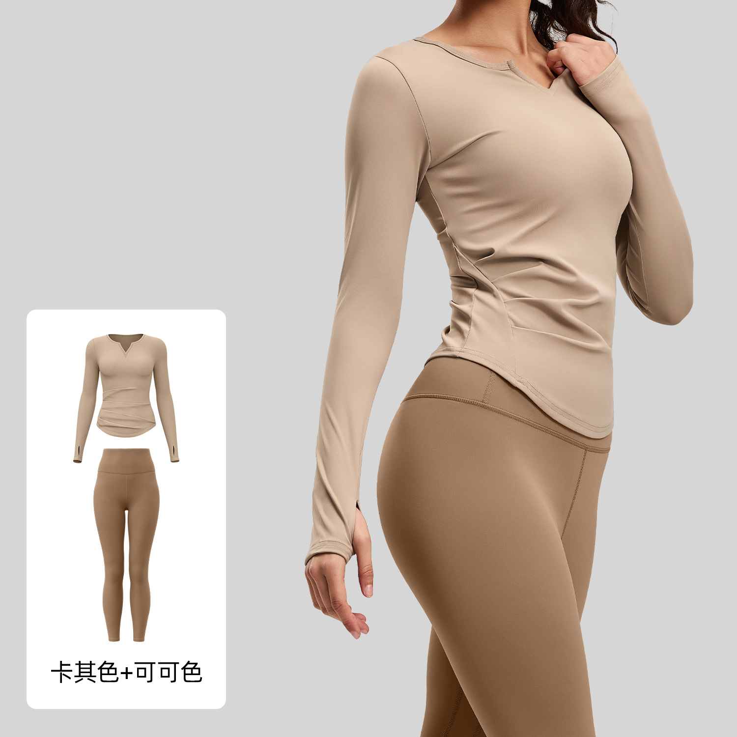 주이탕 브이넥 누드감 요가복 신축성 높은 허리라인 힙업 피트니스 세트 러닝 스포츠 사이클링복
