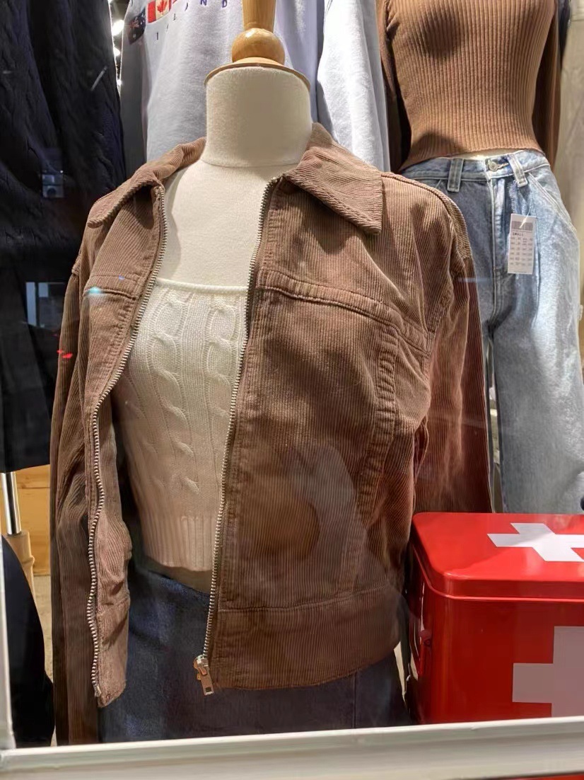 BM 스타일 아메리칸 스타일 복고풍 고뇌 데님 코듀로이 옷깃 짧은 재킷 코트 여성의 bm 탑스토어 가기