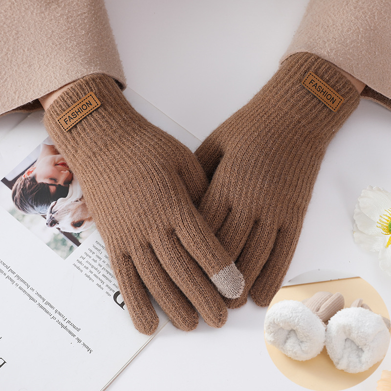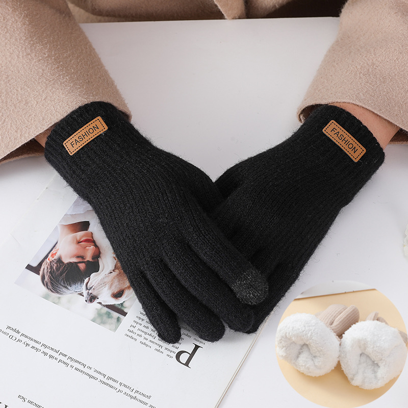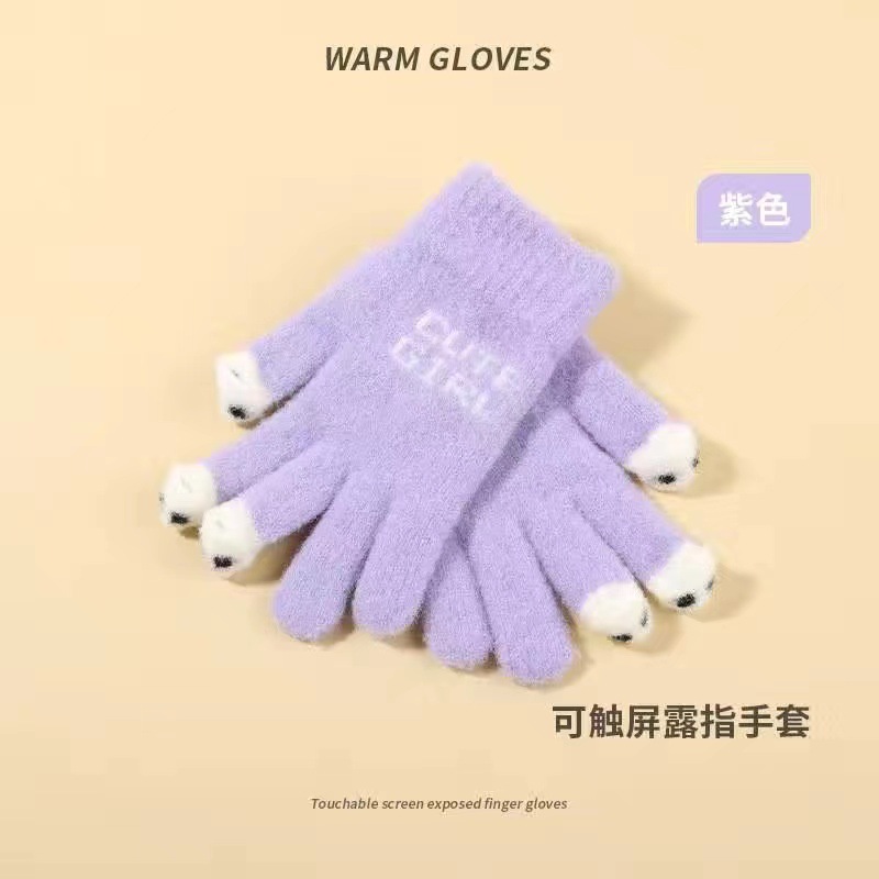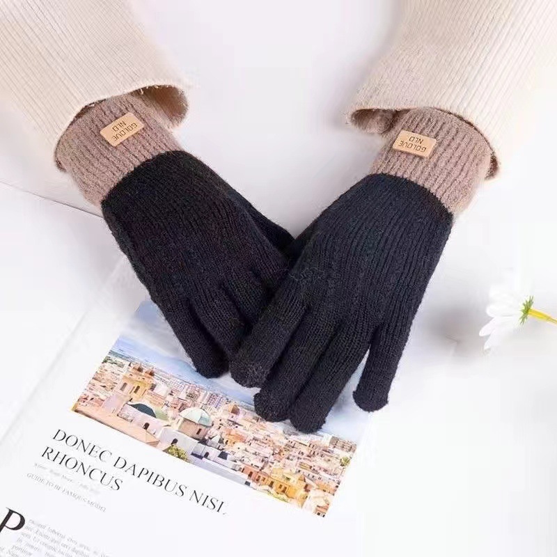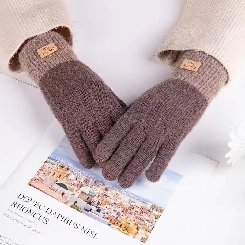 한국 새로운 겨울 니트 장갑 여학생을위한 귀여운 한국식 냉간 따뜻한 유지 두꺼운 터치 스크린 사이클링 장갑