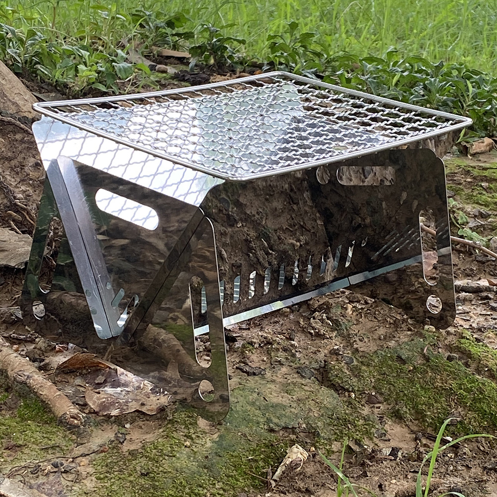 카드 스토브 휴대용 바베큐 그릴 미니 불타는 불 테이블 야외 캠핑 바베큐 그릴 BBQ 스테인레스 스틸 장작 랙