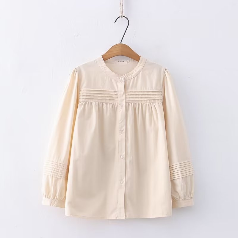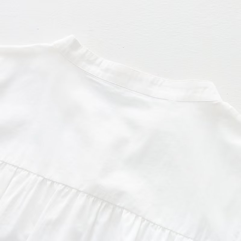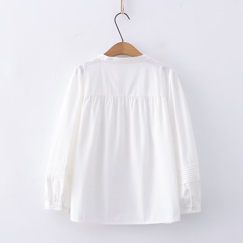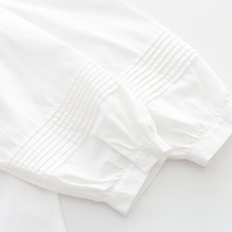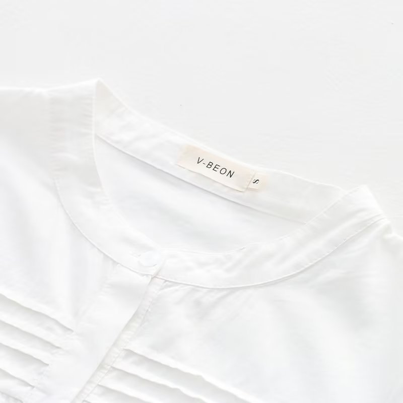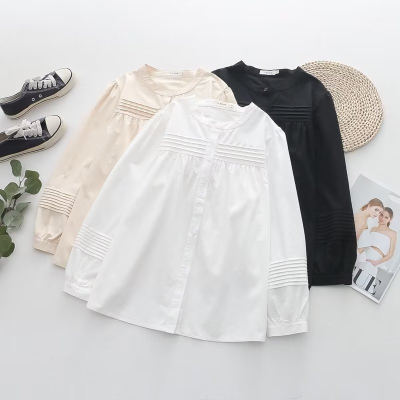 새로운 주름 바느질 라운드 넥 단색 흰색 셔츠의 한국어 버전 여성 도매 바닥 탑