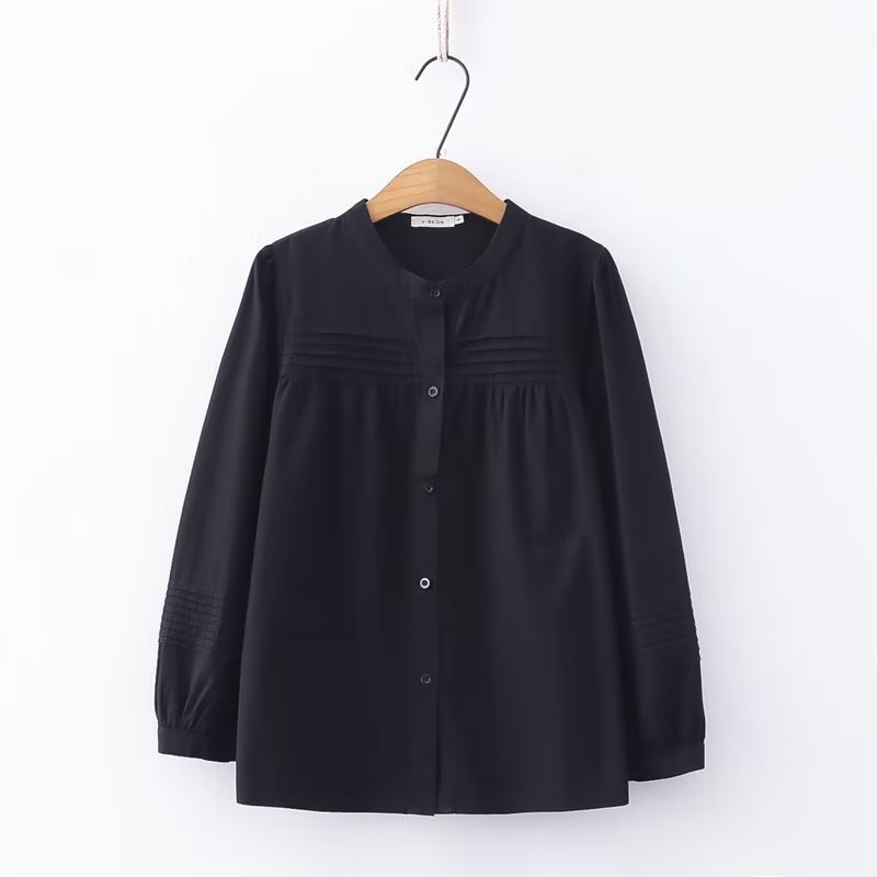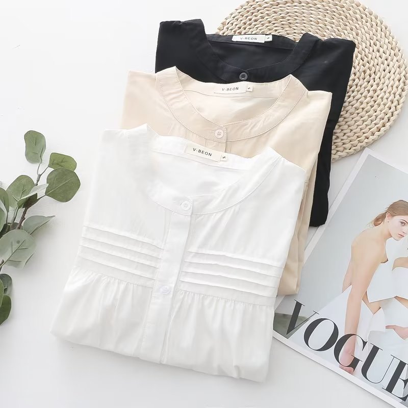 새로운 주름 바느질 라운드 넥 단색 흰색 셔츠의 한국어 버전 여성 도매 바닥 탑스토어 가기