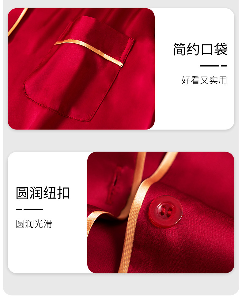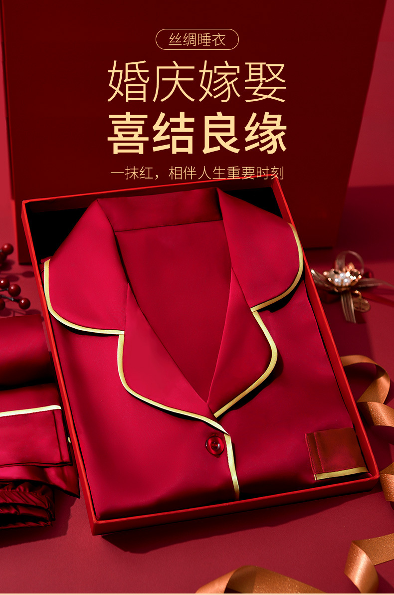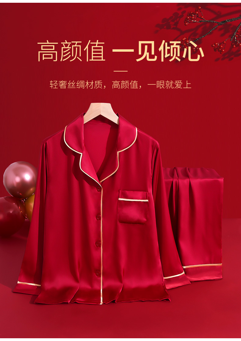 커플 잠옷 여자의 결혼식 빨간 봄과 가을 하이 엔드 새로운 결혼식 세트 아이스 실크 긴 소매 남성 의류스토어 가기