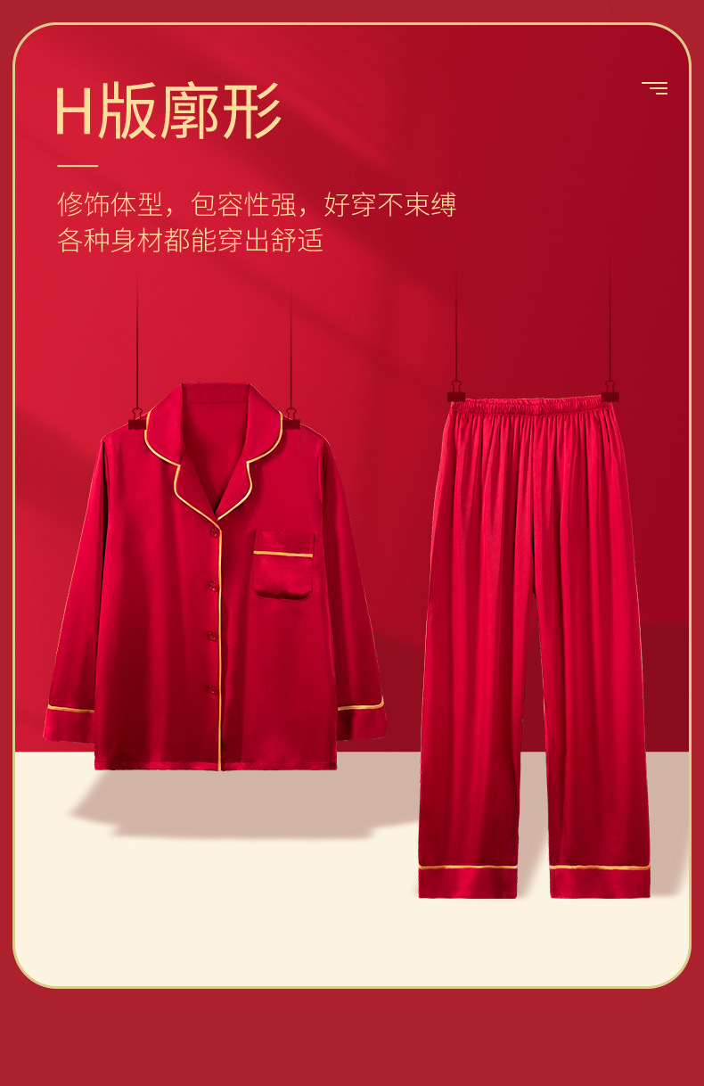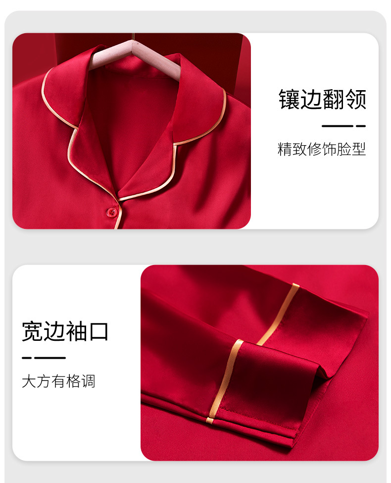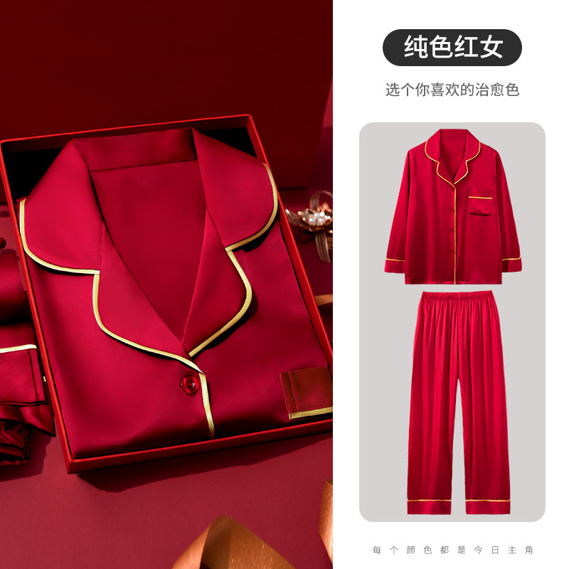 커플 잠옷 여자의 결혼식 빨간 봄과 가을 하이 엔드 새로운 결혼식 세트 아이스 실크 긴 소매 남성 의류