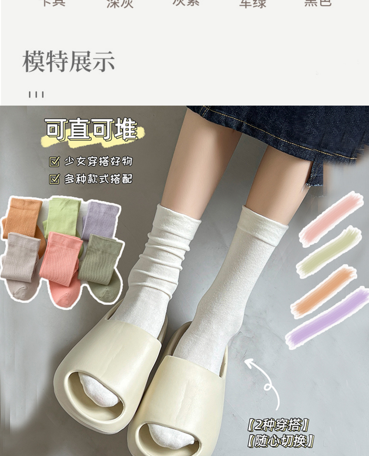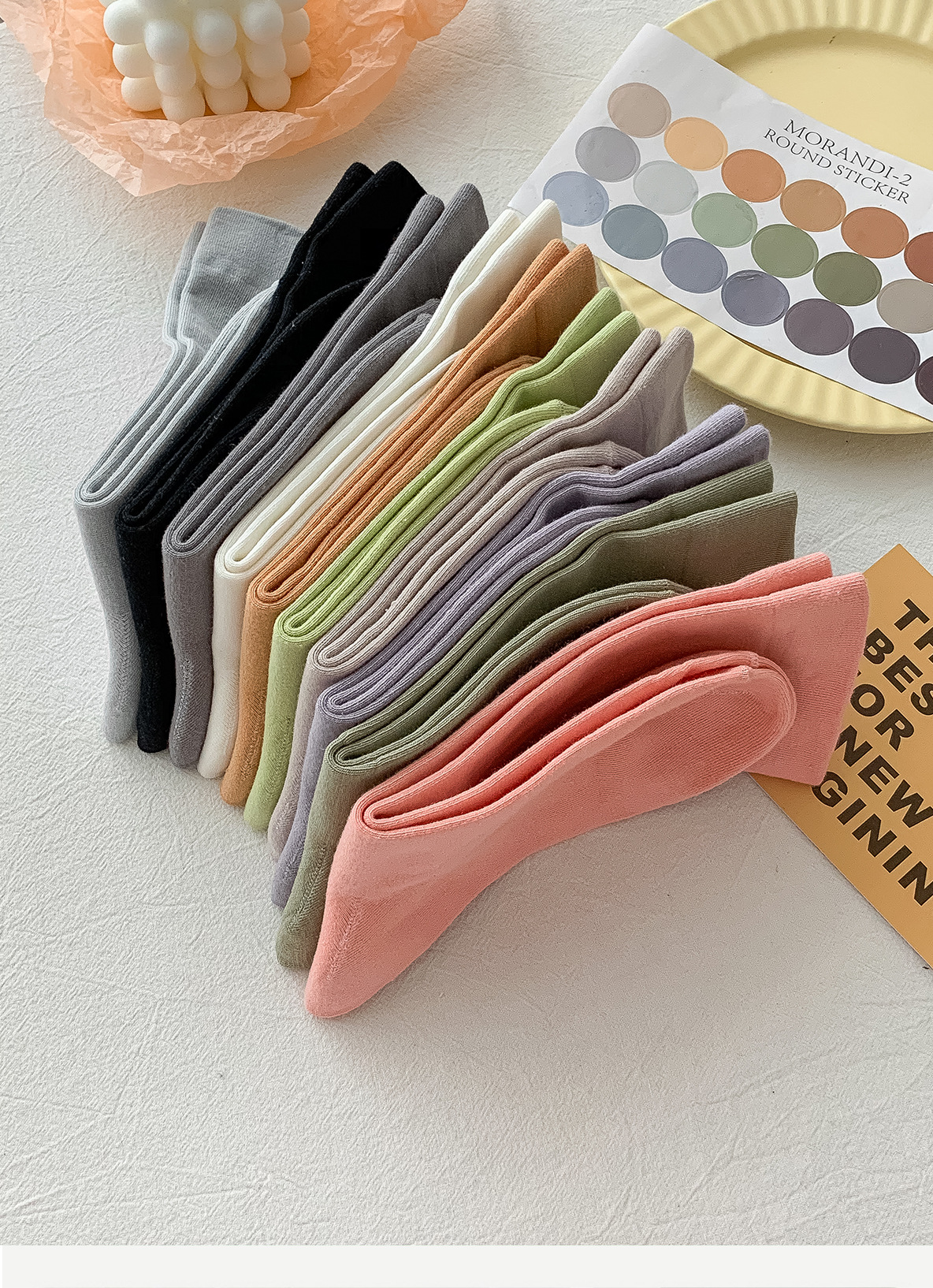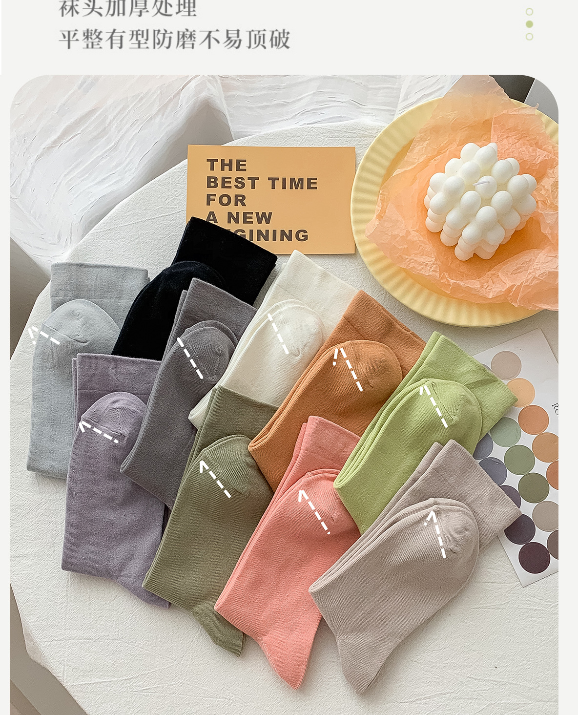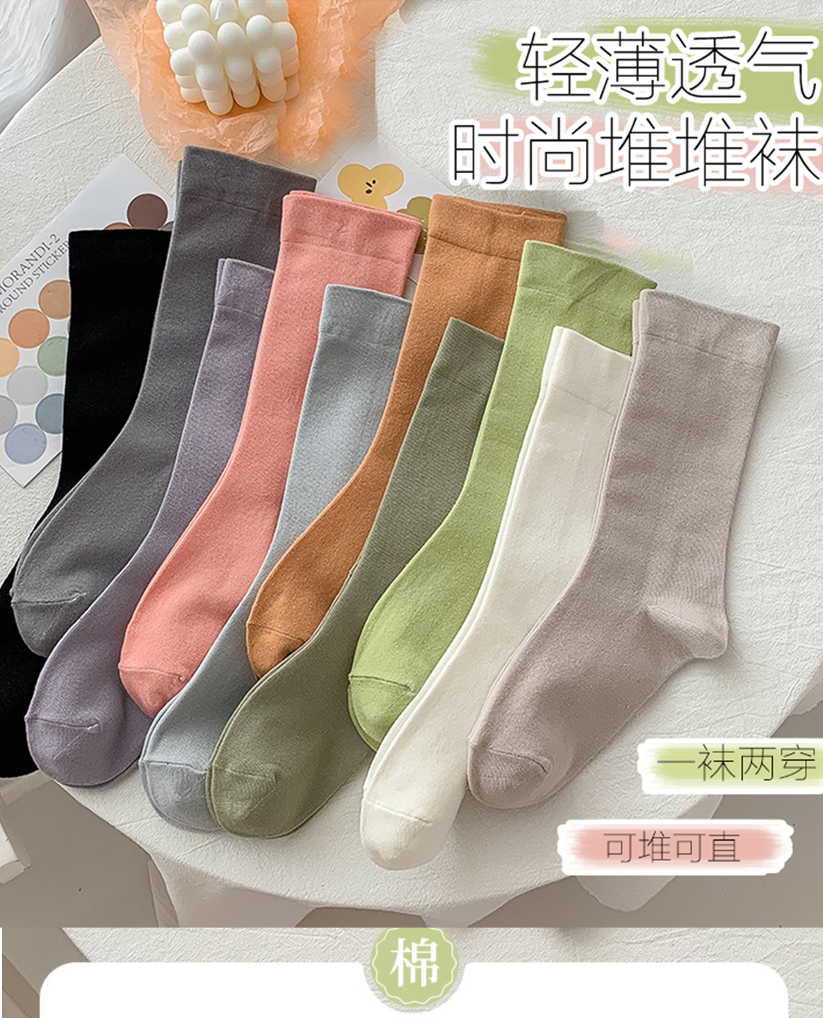 양말 여성용 봄과 가을 얇은 단색 스택 일본식 캔디 컬러 미드 튜브 여성용 양말 통기성 넓은 Rakou 여성용 면 양말